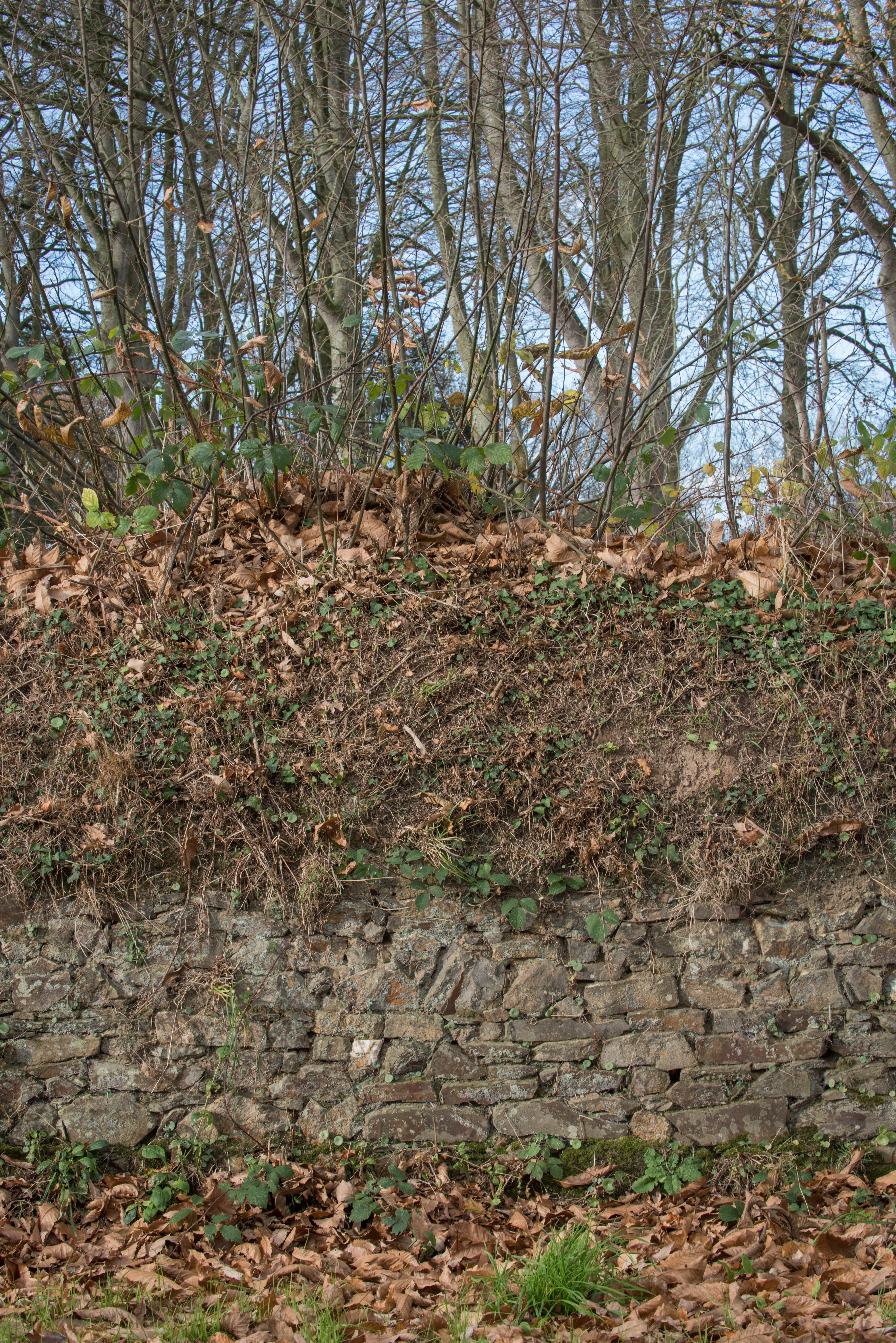 Lanvéac (près de). Route départementale. Talus-mur. Détail de la mise en oeuvreImmatriculation