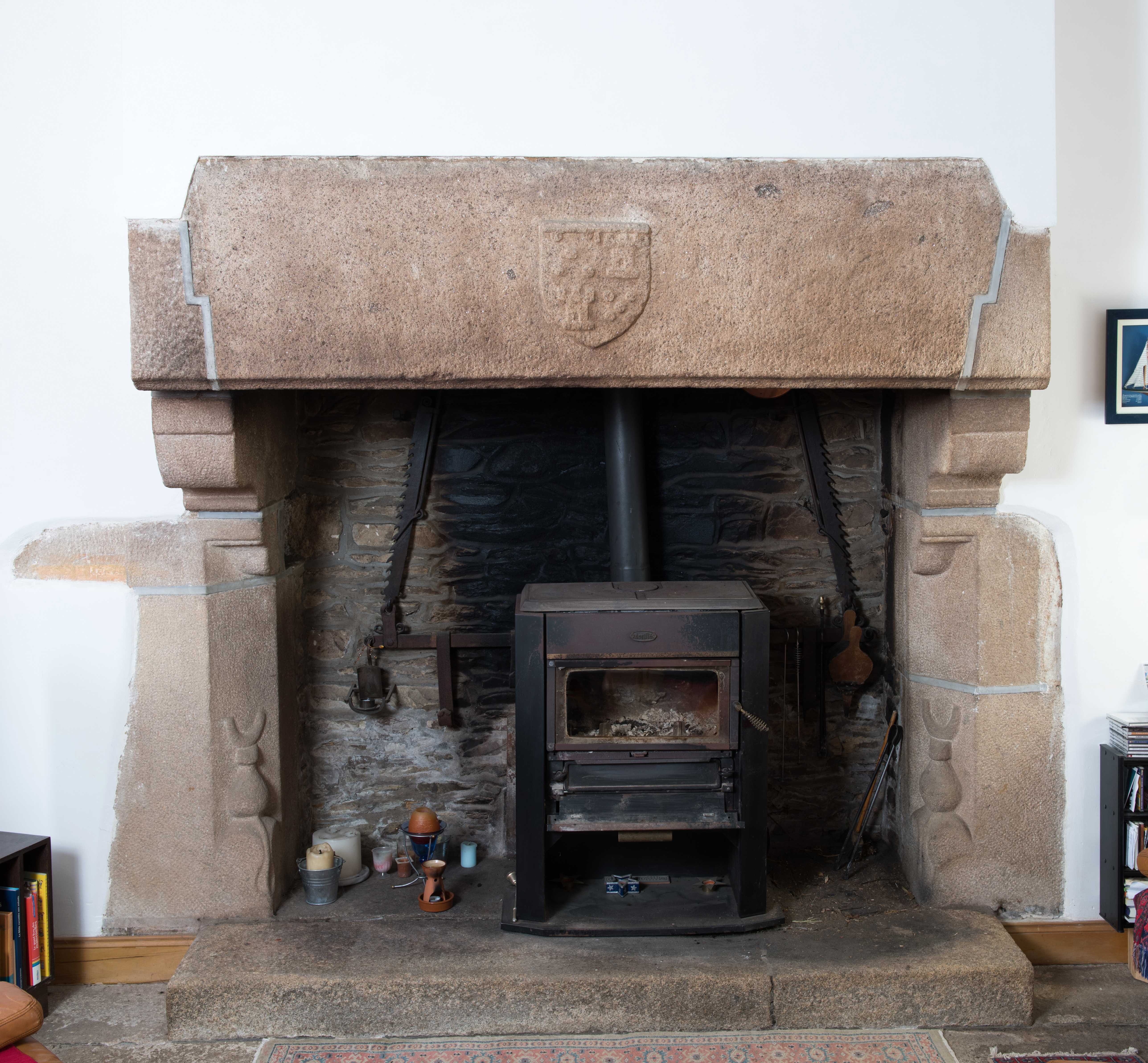 Nouveau logis. Rez-de-chausssée. Cheminée de l'ancien manoir, fin 15e siècle. Vue généraleImmatriculation