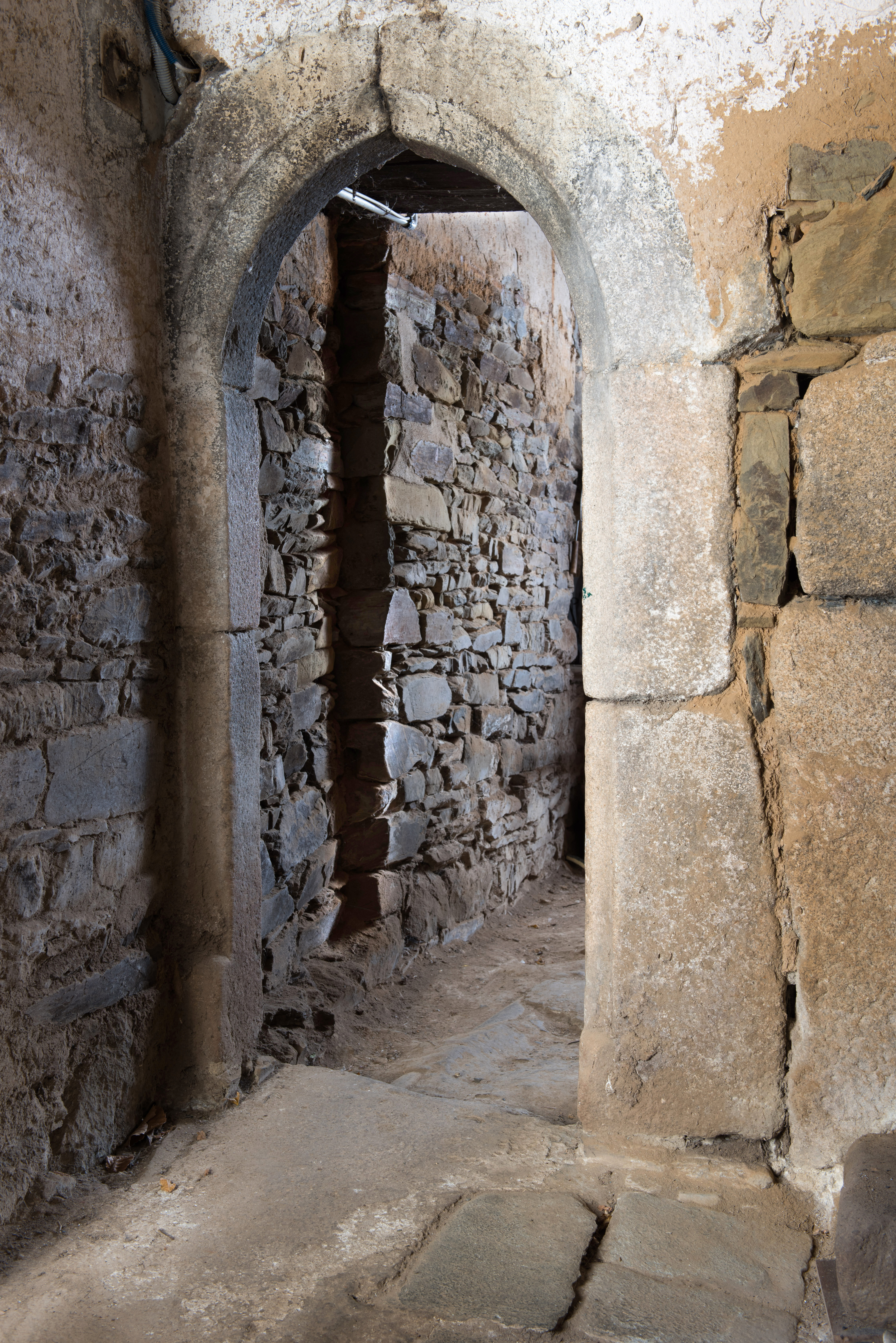 Vestiges du manoir d'origine. Rez-de-chaussée. Détail de la porte associée à la cheminéeImmatriculation