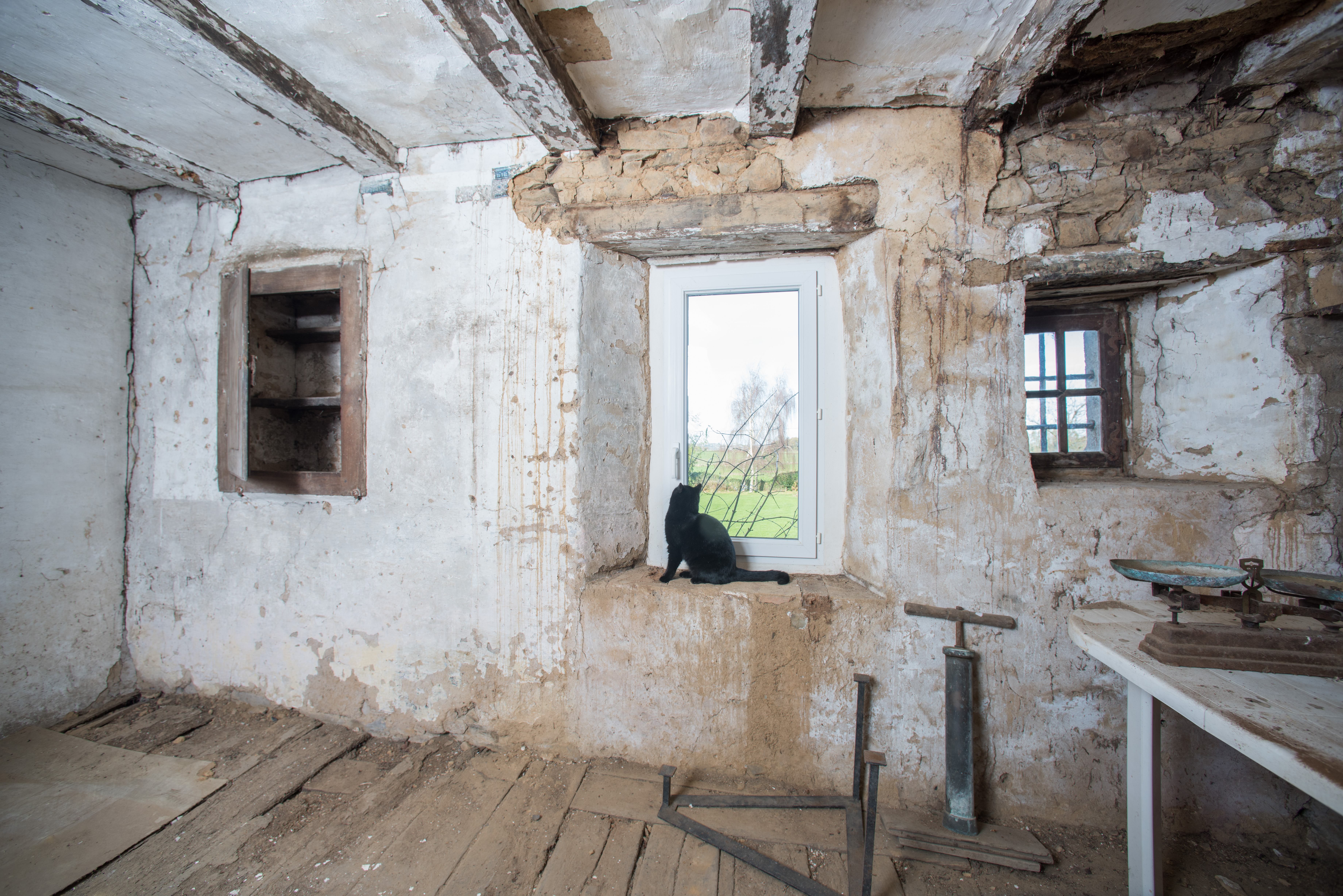 Vestiges du manoir. Appentis nord. Pièce à mi-niveau entre le rez-de-chaussée et l'étageImmatriculation