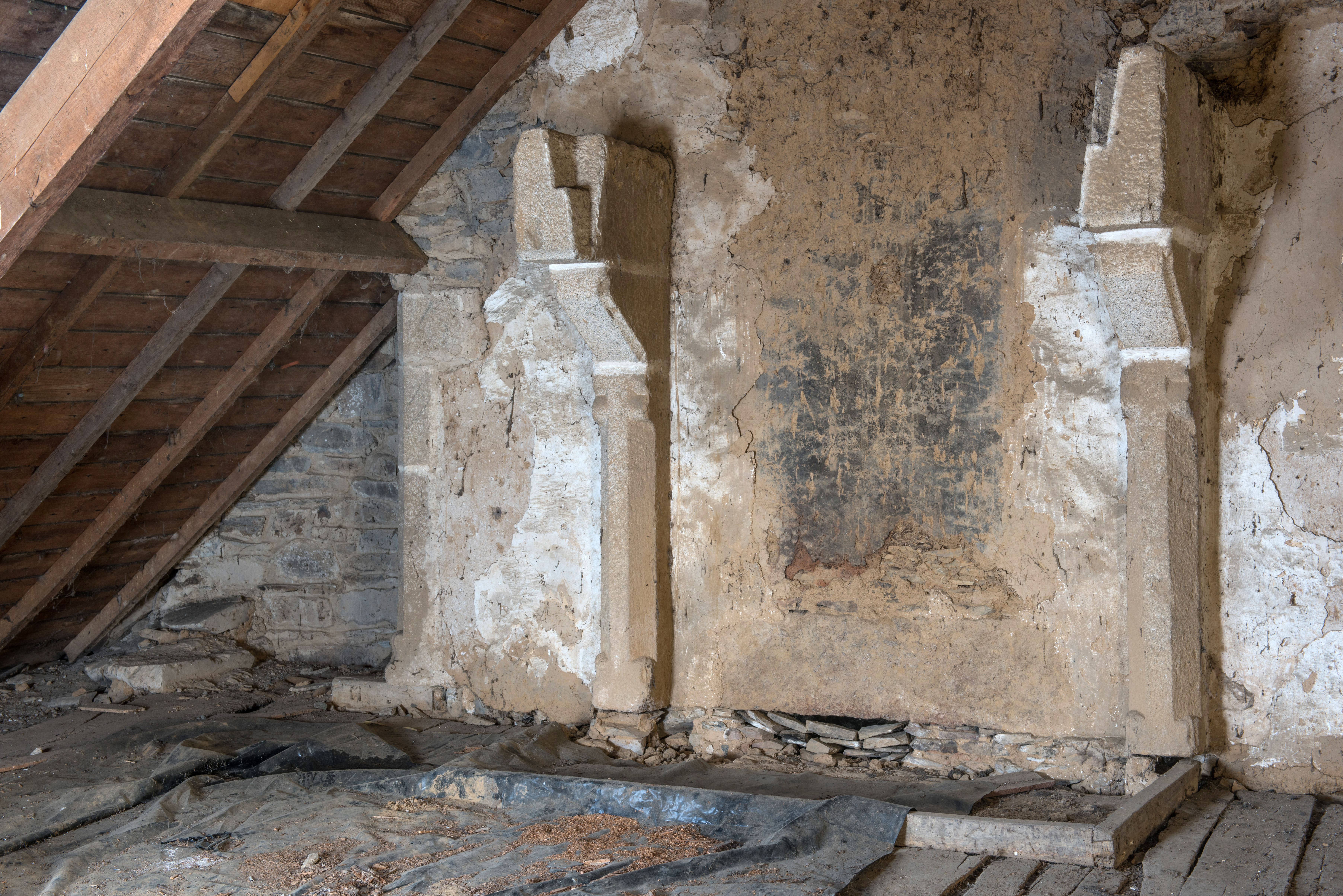 Vestiges du manoir d'origine. Anciens combles à surcroît. Vestiges de la cheminée et de la porte associée. Vue généraleImmatriculation