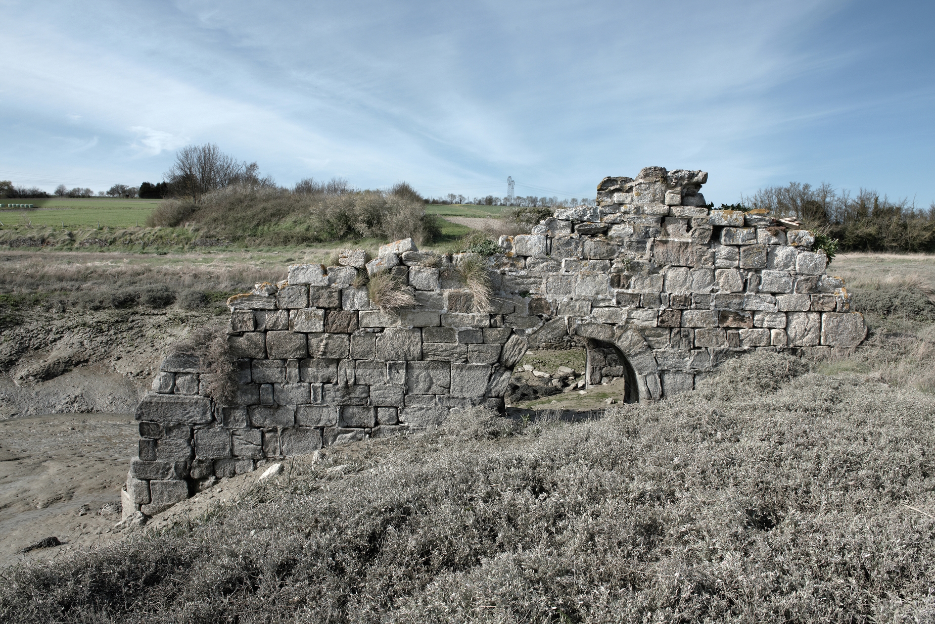 Moulin de mer : vestiges des soubassements à marée basseImmatriculation