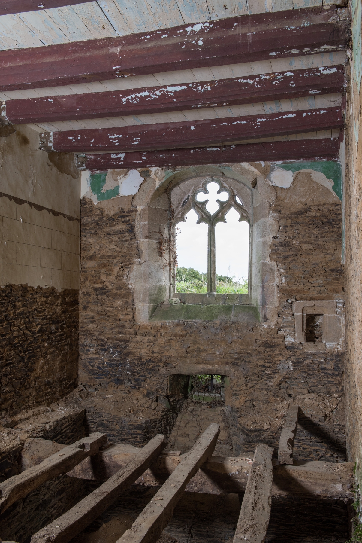 Chapelle du manoir avec baie à remplage et crédence associées sur le mur estImmatriculation