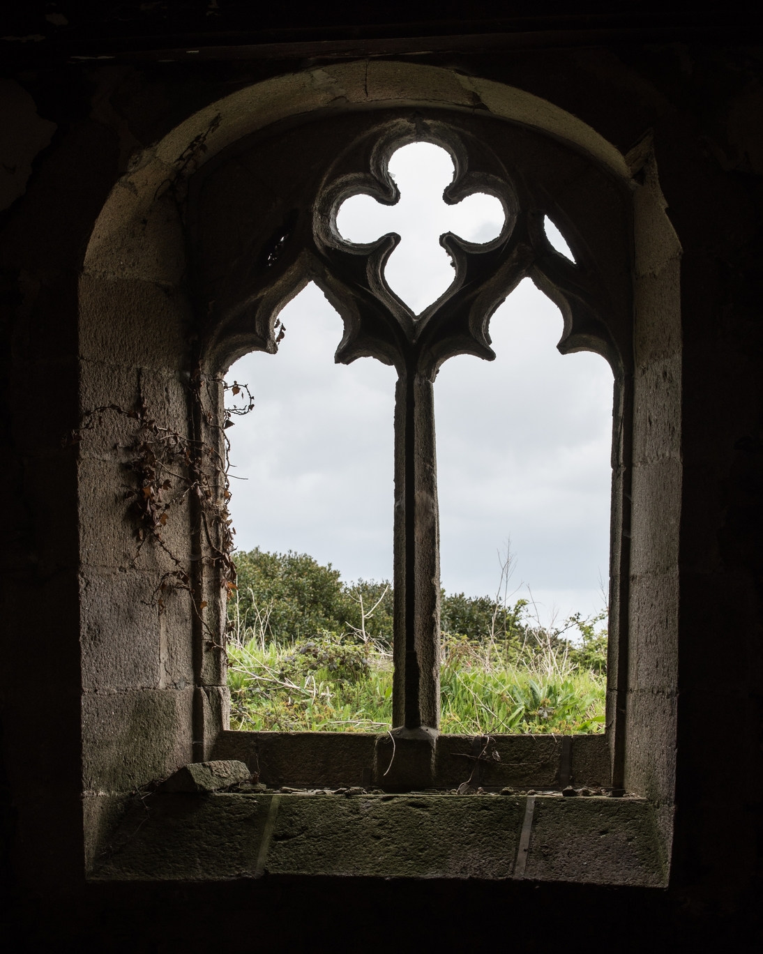 Chapelle du manoir. Détail de la baie à remplage gothiqueImmatriculation