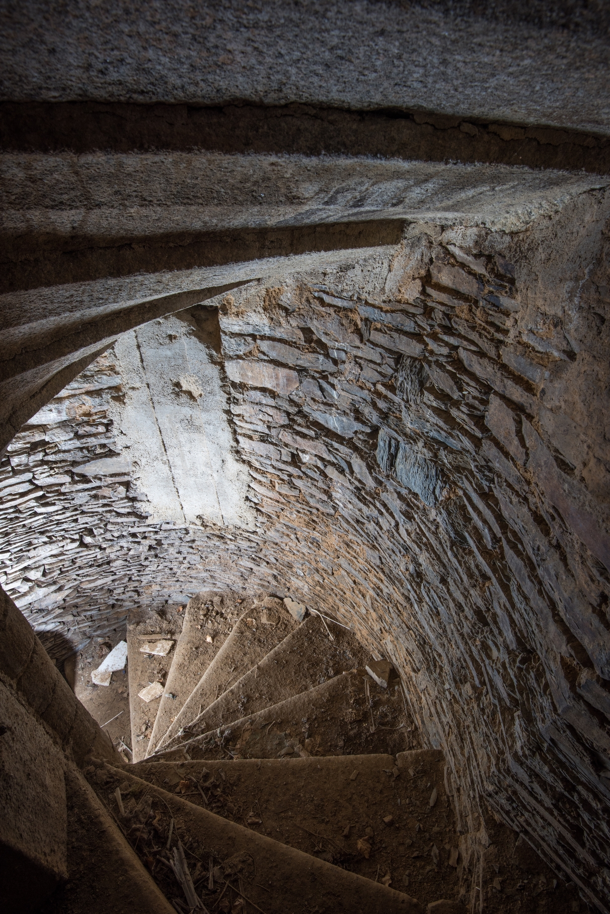 Tour d'escalier. Détail de la volée conduisant à la caveImmatriculation