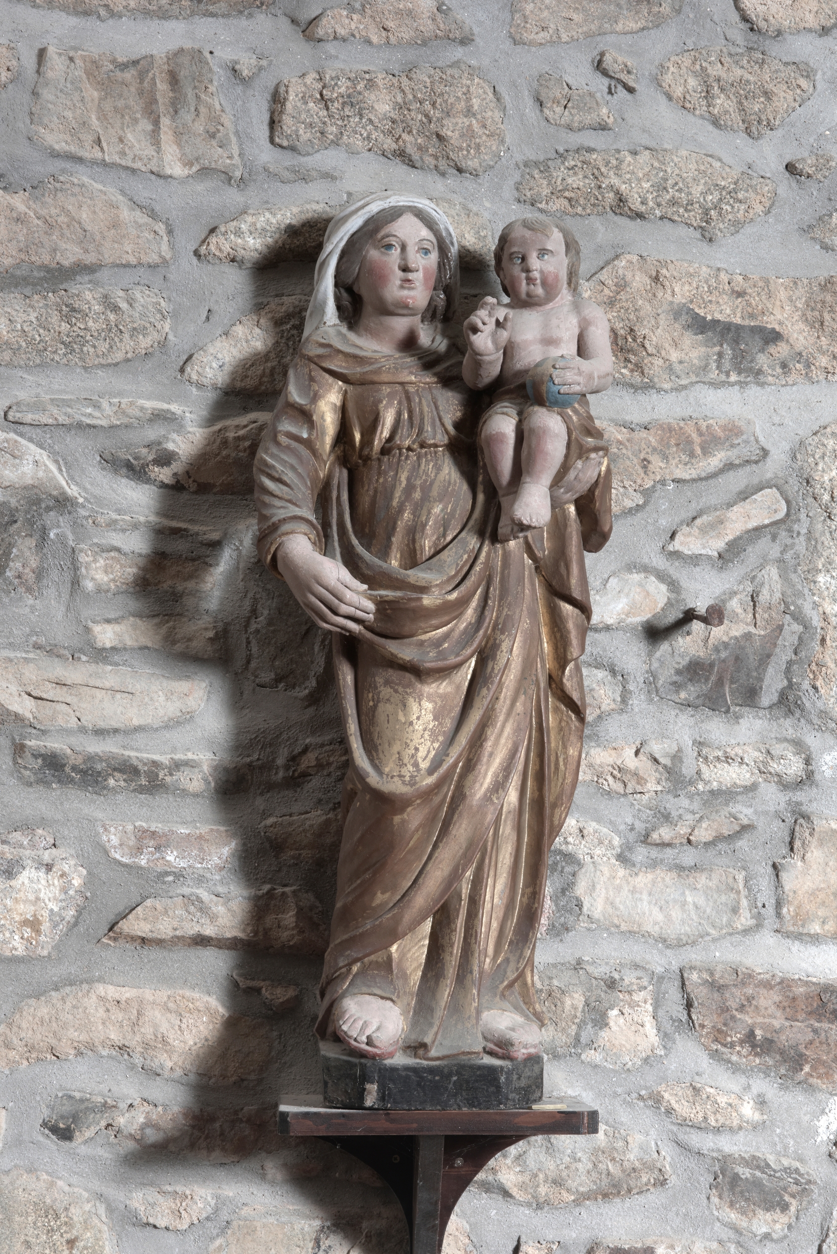 Kermaria-Sulard, le bourg : église paroissiale Notre-Dame-de-la-Joie, statue ancienne, Vierge à l'enfantImmatriculation