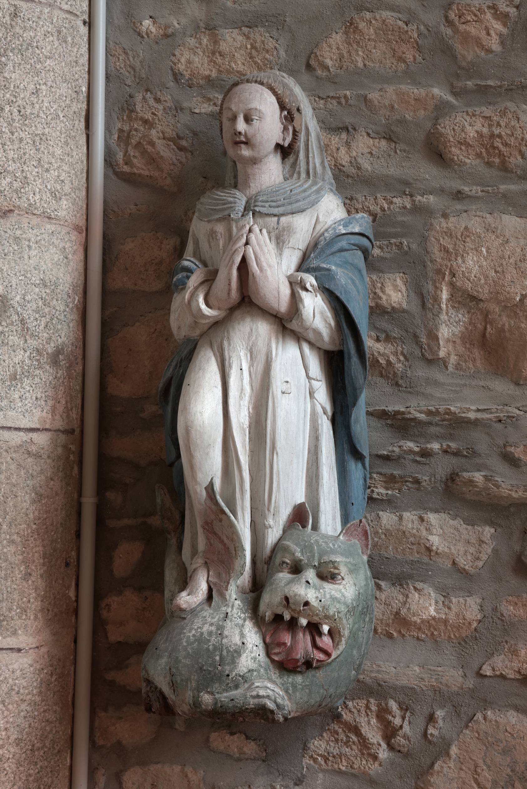 Kermaria-Sulard : église paroissiale Notre-Dame-de-la-Joie, statue de sainte MargueriteImmatriculation