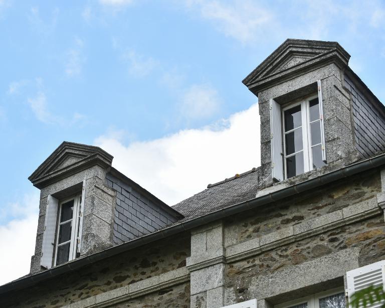 Détails des fenêtres-pignons à frontons triangulaires, façade principaleImmatriculation