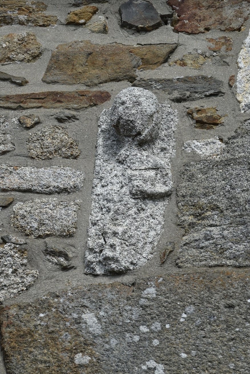 Figurine en rond de bosse de granite, angle sud-ouest de l'église paroissialeImmatriculation