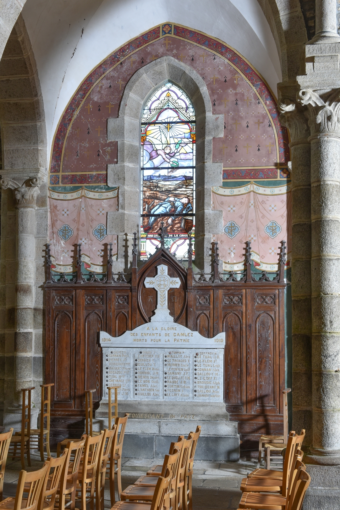 Église paroissiale Saint-Trémeur (Camlez) - Bas côté est, monument aux morts. Vue générale.Immatriculation