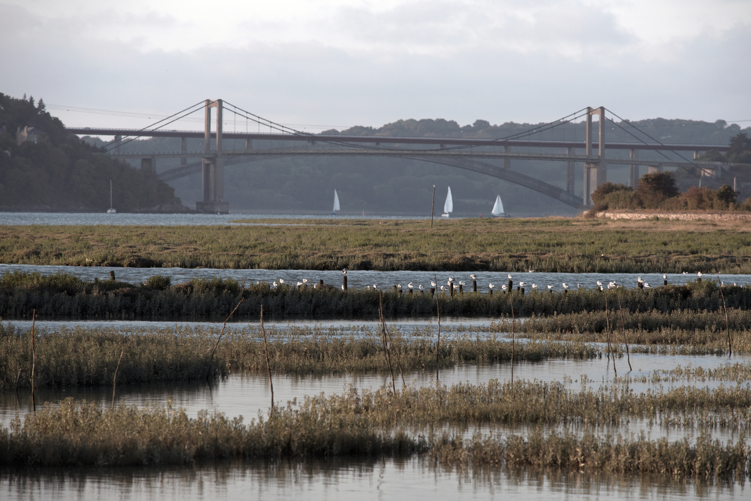 Vue lointaine prise des quais du pont Saint-Hubert (La Ville-es-Nonnais-Plouër)Immatriculation