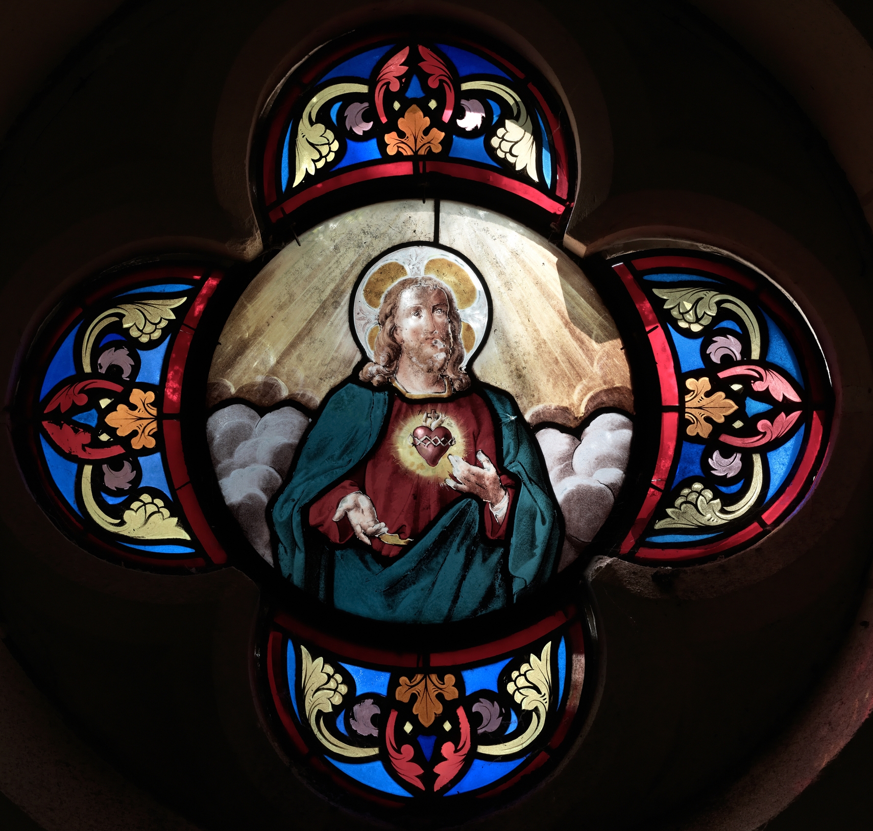 Vitrail le chapelle d'axe, Christ au coeur flamboyantImmatriculation
