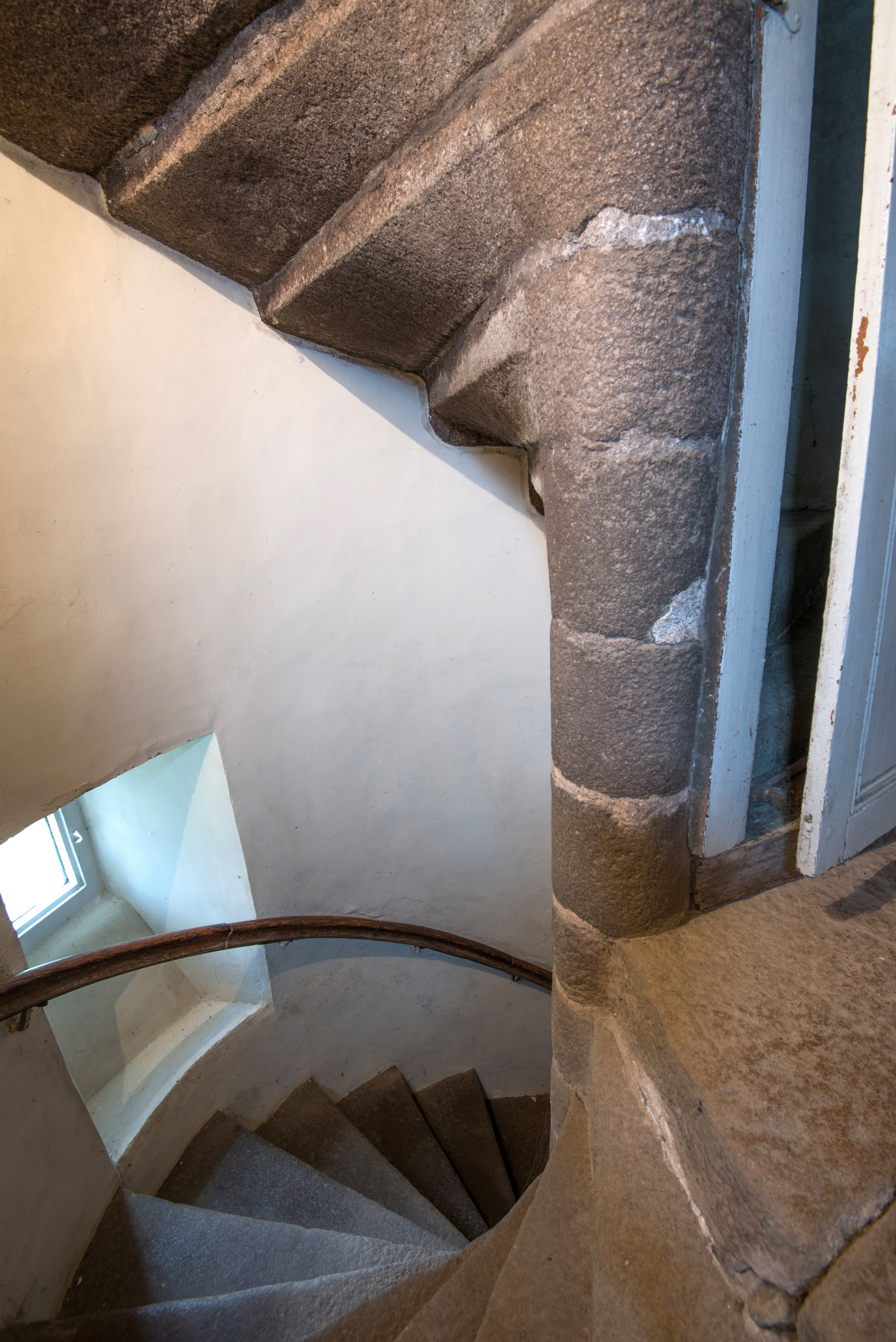 Langoat, Le Cosquer : manoir puis ferme, détail de l'escalier en visImmatriculation