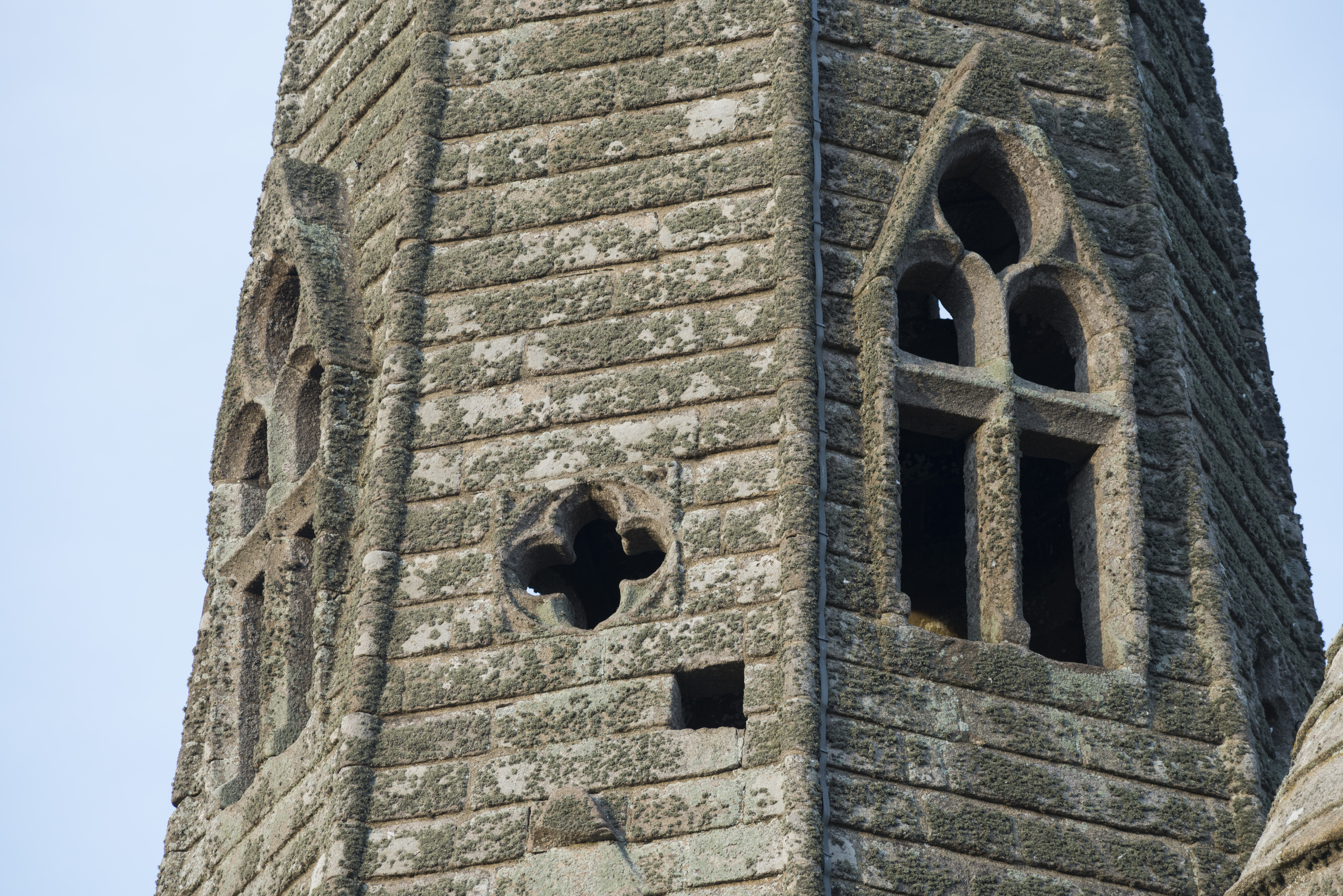 Tréguier : tour Saint-Michel, détail de la flèche octogonale depuis le nord-est, baieImmatriculation