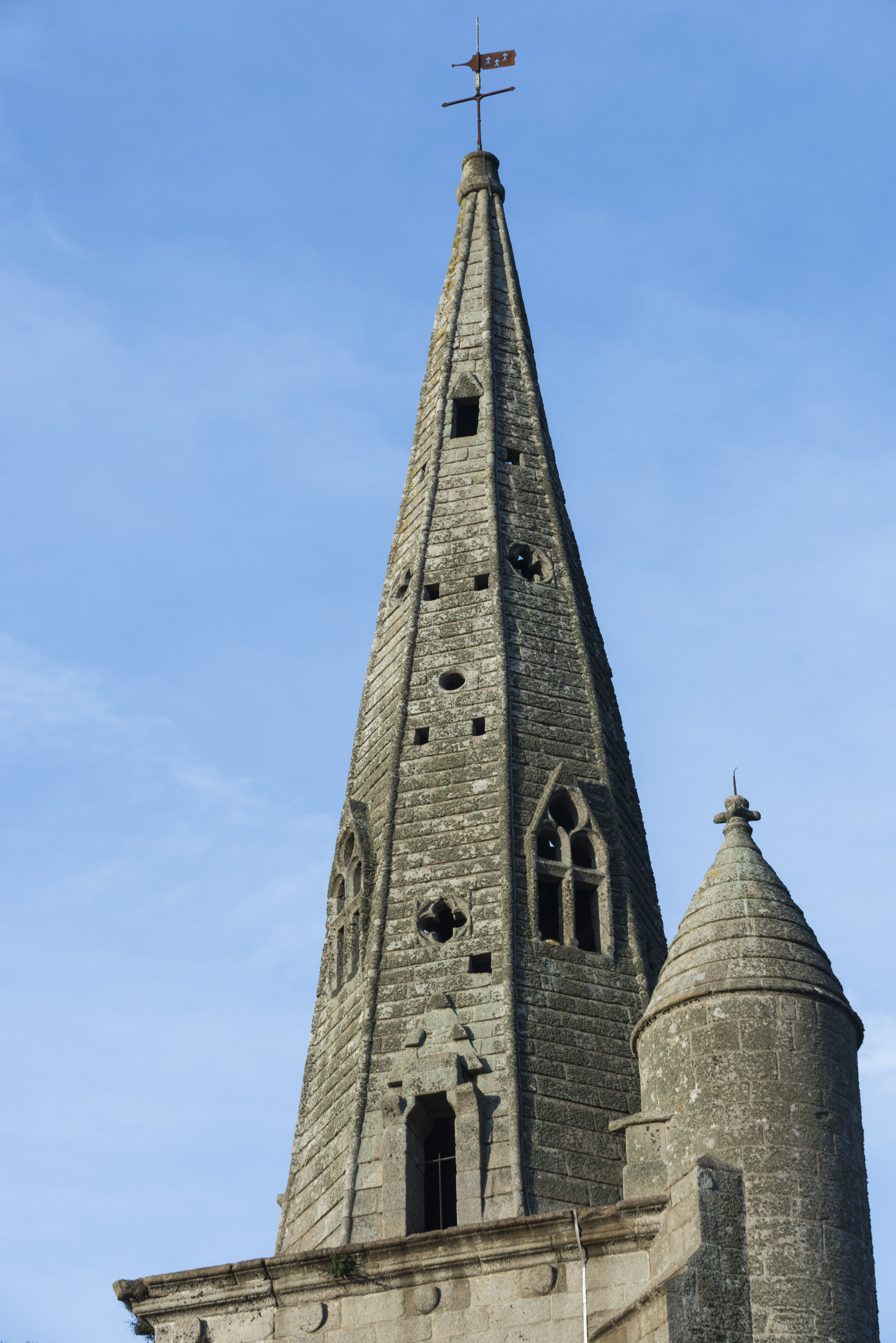 Tréguier : tour Saint-Michel, détail de la flèche octogonale depuis le nord-estImmatriculation