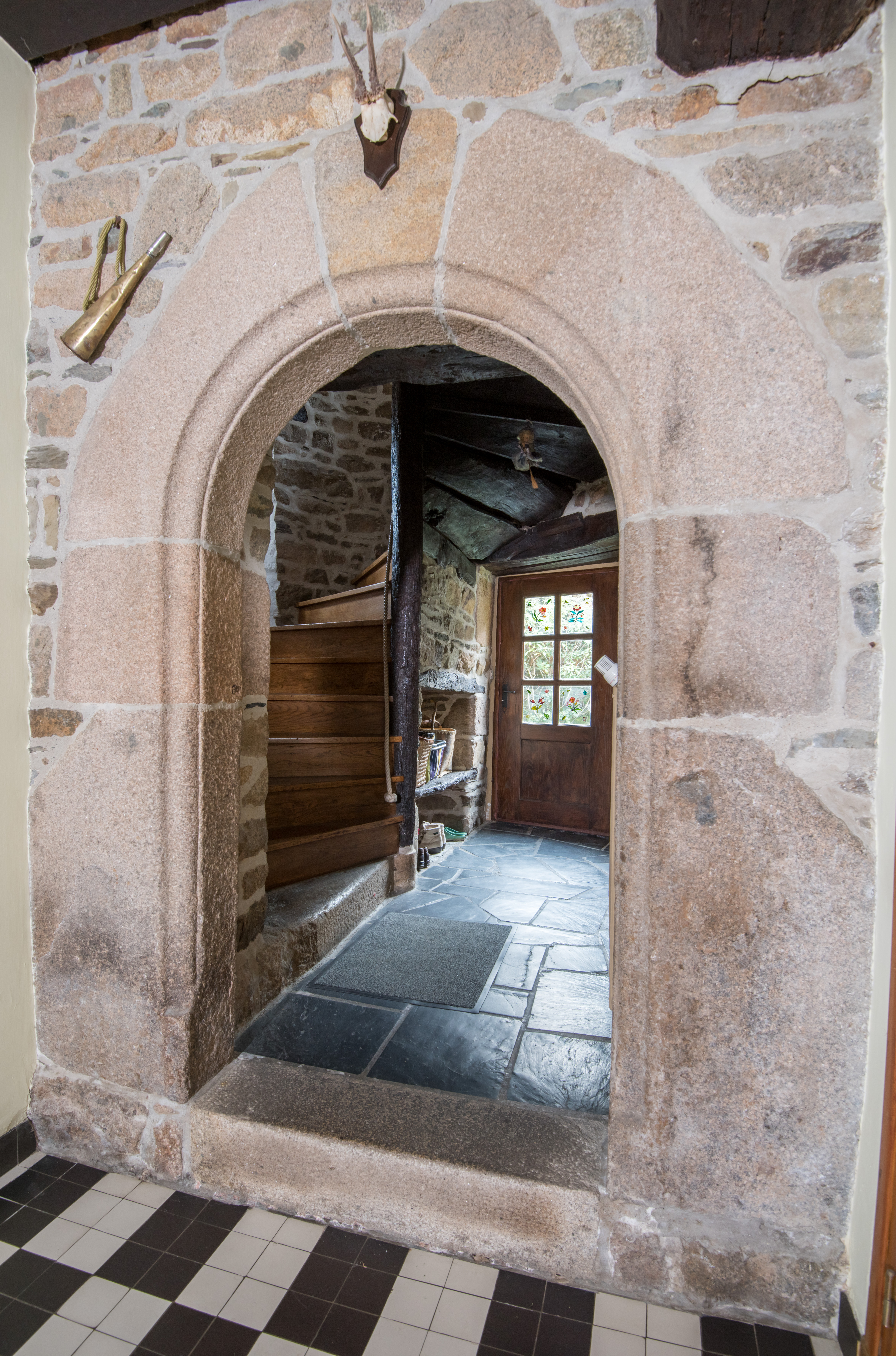 Rez-de-chaussée. Mur arrière sud. Détail de la porte d'entrée de la tour d'escalierImmatriculation