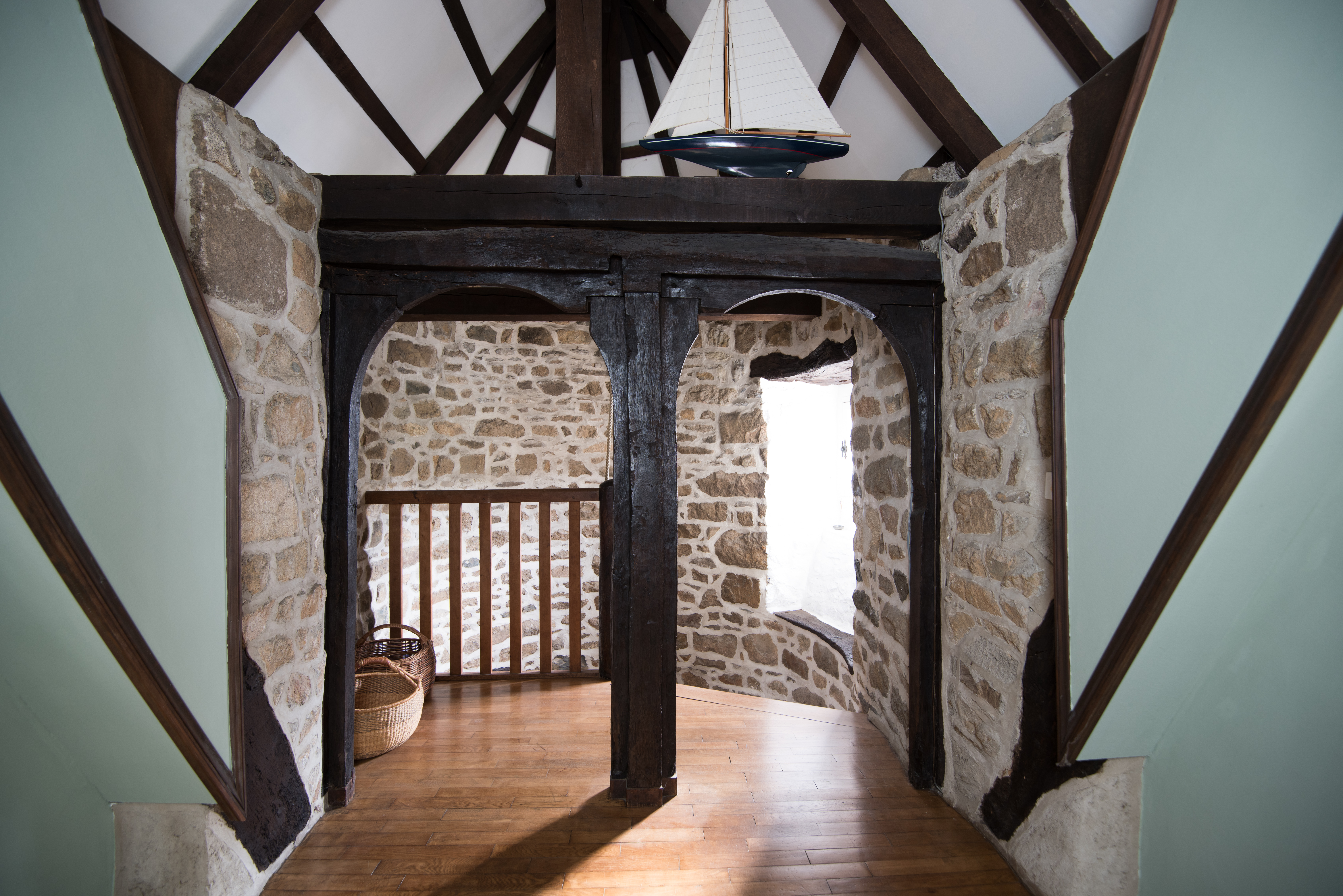 Palier de l'étage de comble. Portes jumelées desservant les chambresImmatriculation