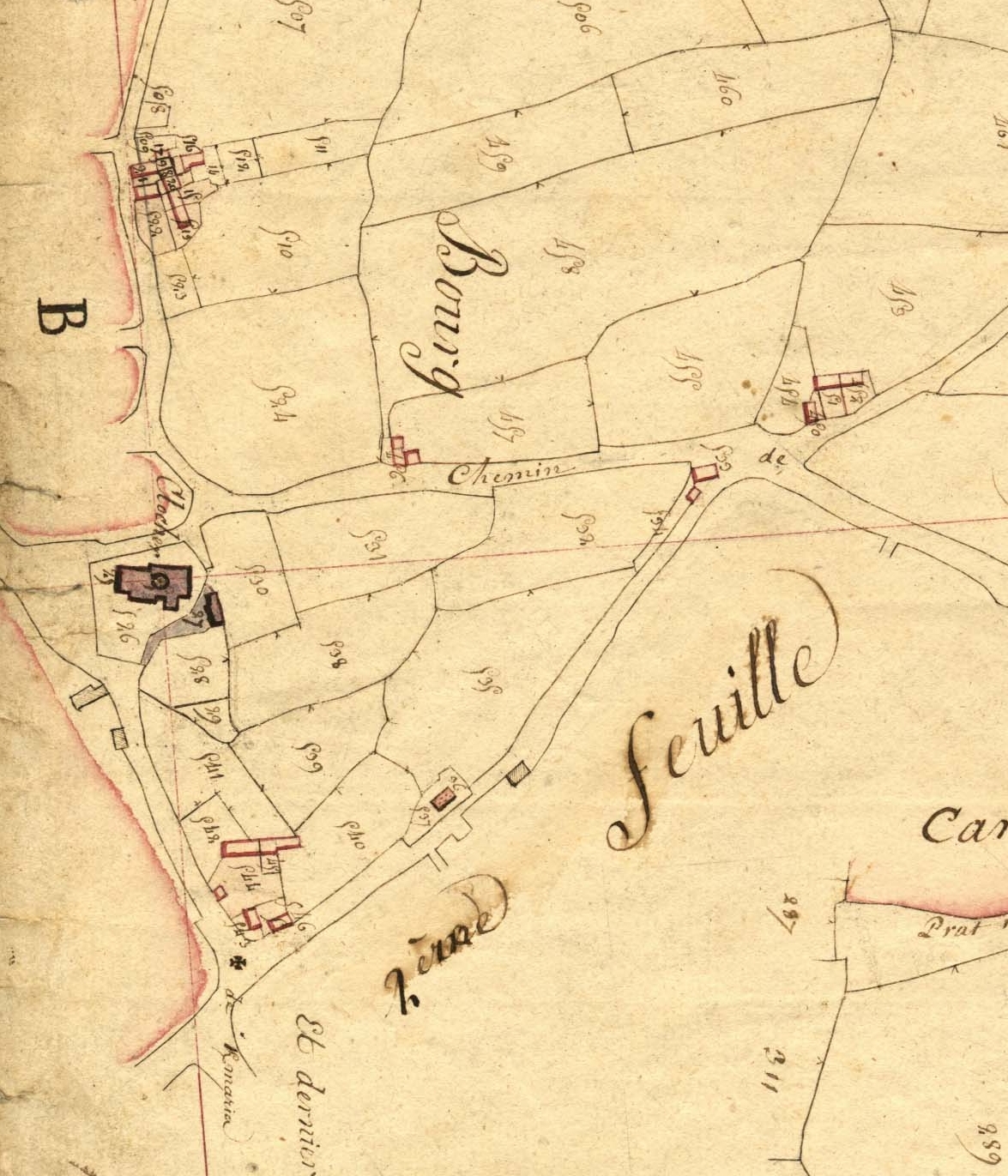 Extrait du cadastre ancien de la commune de Kermaria-Sulard, 1819 : le bourgImmatriculation