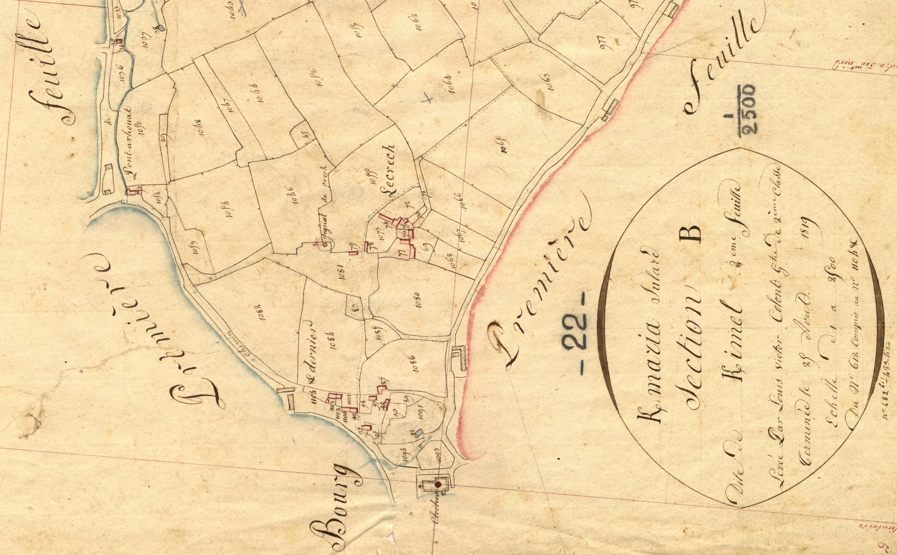 Extrait du cadastre ancien de la commune de Kermaria-Sulard, 1819 : le bourgImmatriculation