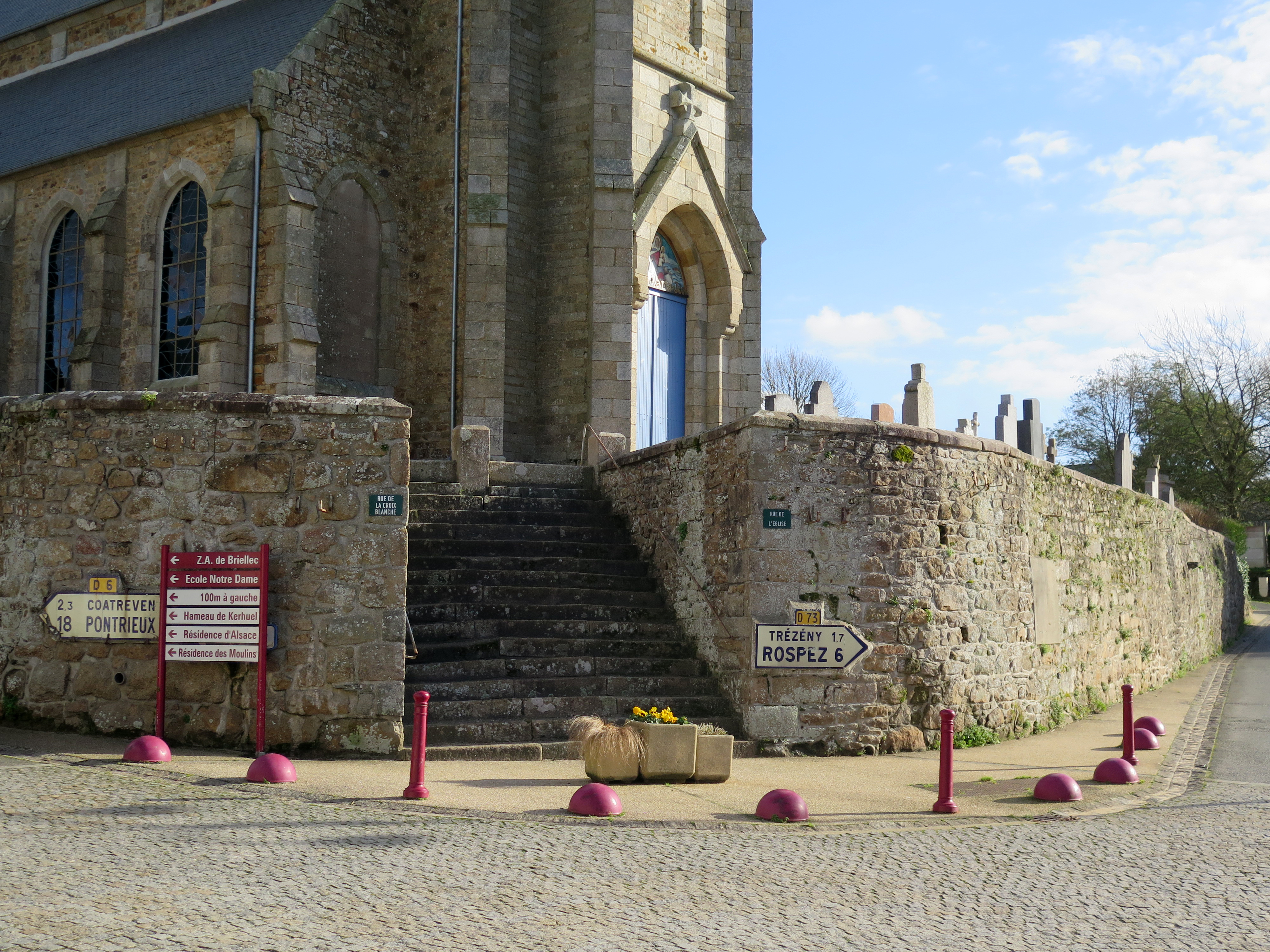Kermaria-Sulard : église paroissiale Notre-Dame-de-la-Joie, escalier permettant l'accès au placîtreImmatriculation