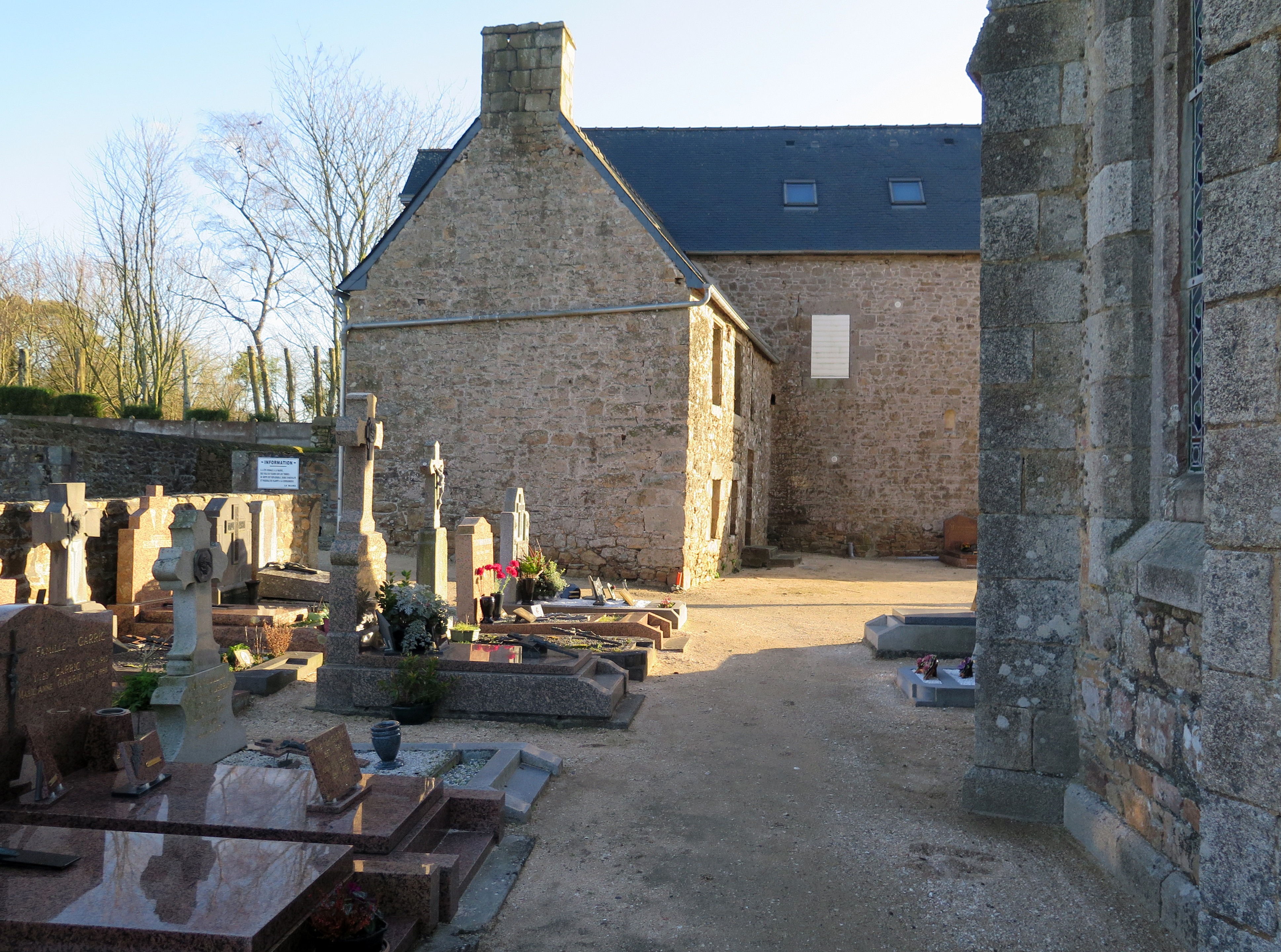 Kermaria-Sulard, le bourg, 1 rue de l'église : presbytère (aile nord primitive), vue de situation depuis le nordImmatriculation