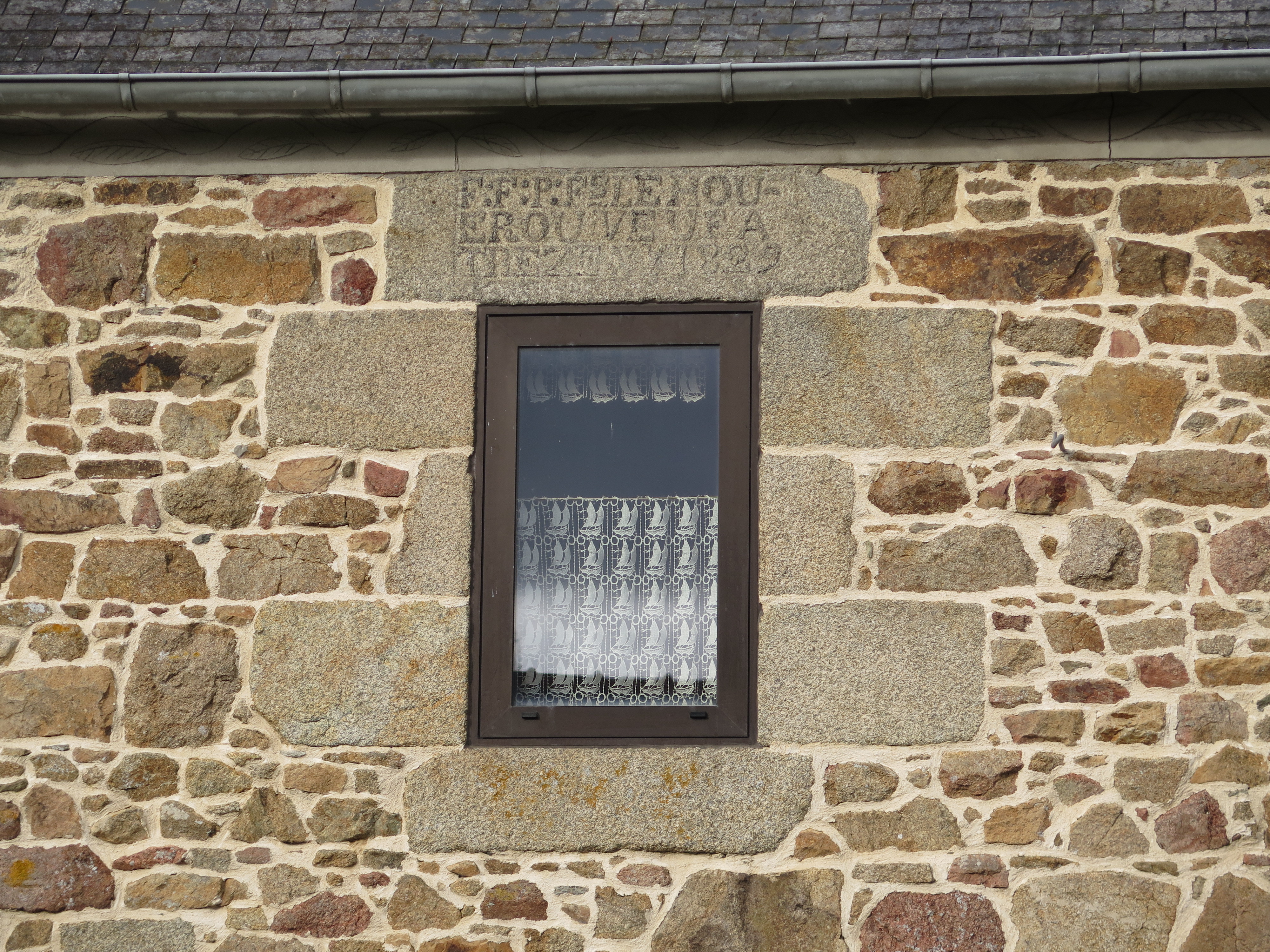 Kermaria-Sulard, le bourg, rue de l'église : logis de ferme daté 1829. Sur le lienteau de la fenêtre, on peut lire "F: F: P: Fs LE HOU-/ EROU VEUF A / TREZENY 1829"Immatriculation