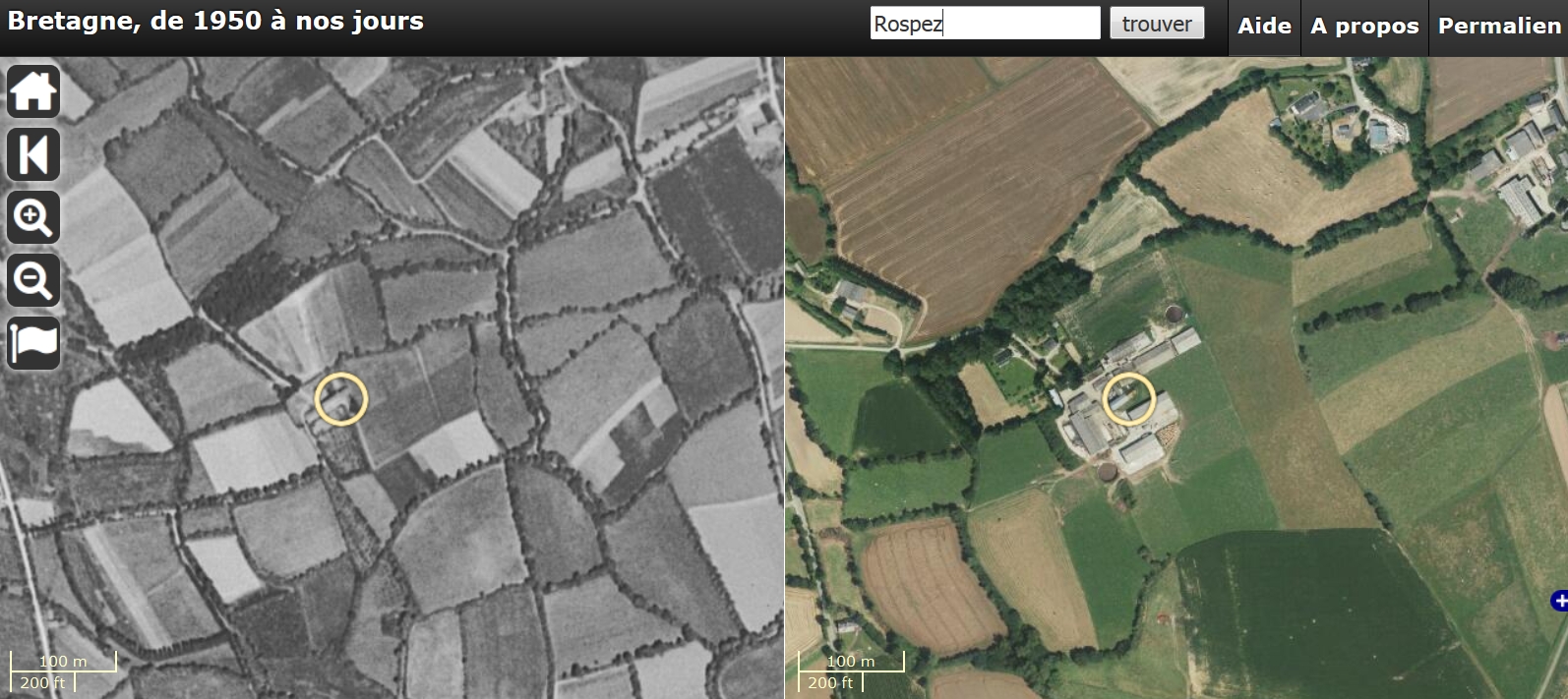 Rospez : emplacement de l'ancien manoir de Porz ar Lann (source : site Internet, "Bretagne, de 1950 à nos jours")Immatriculation