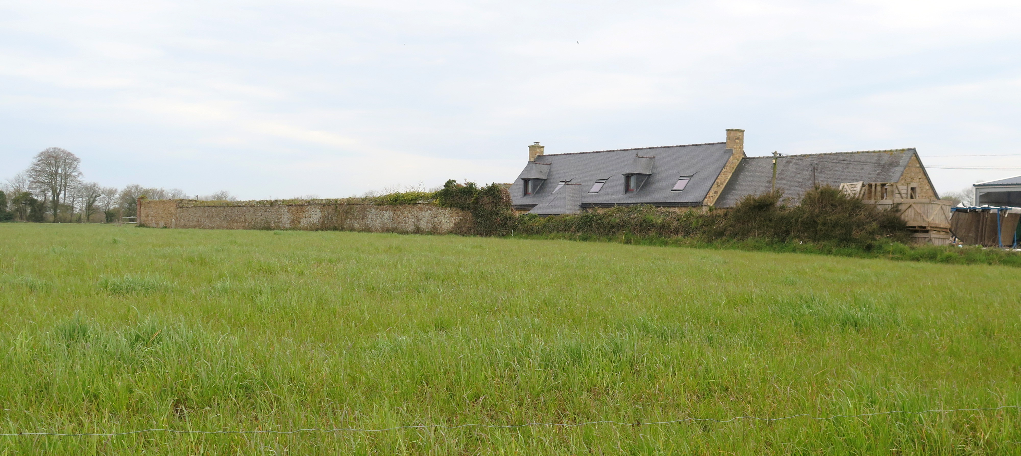 Kermaria-Sulard, Kergoff : métairie nord du château (reconstruction partielle), vestiges du mur de clôtureImmatriculation