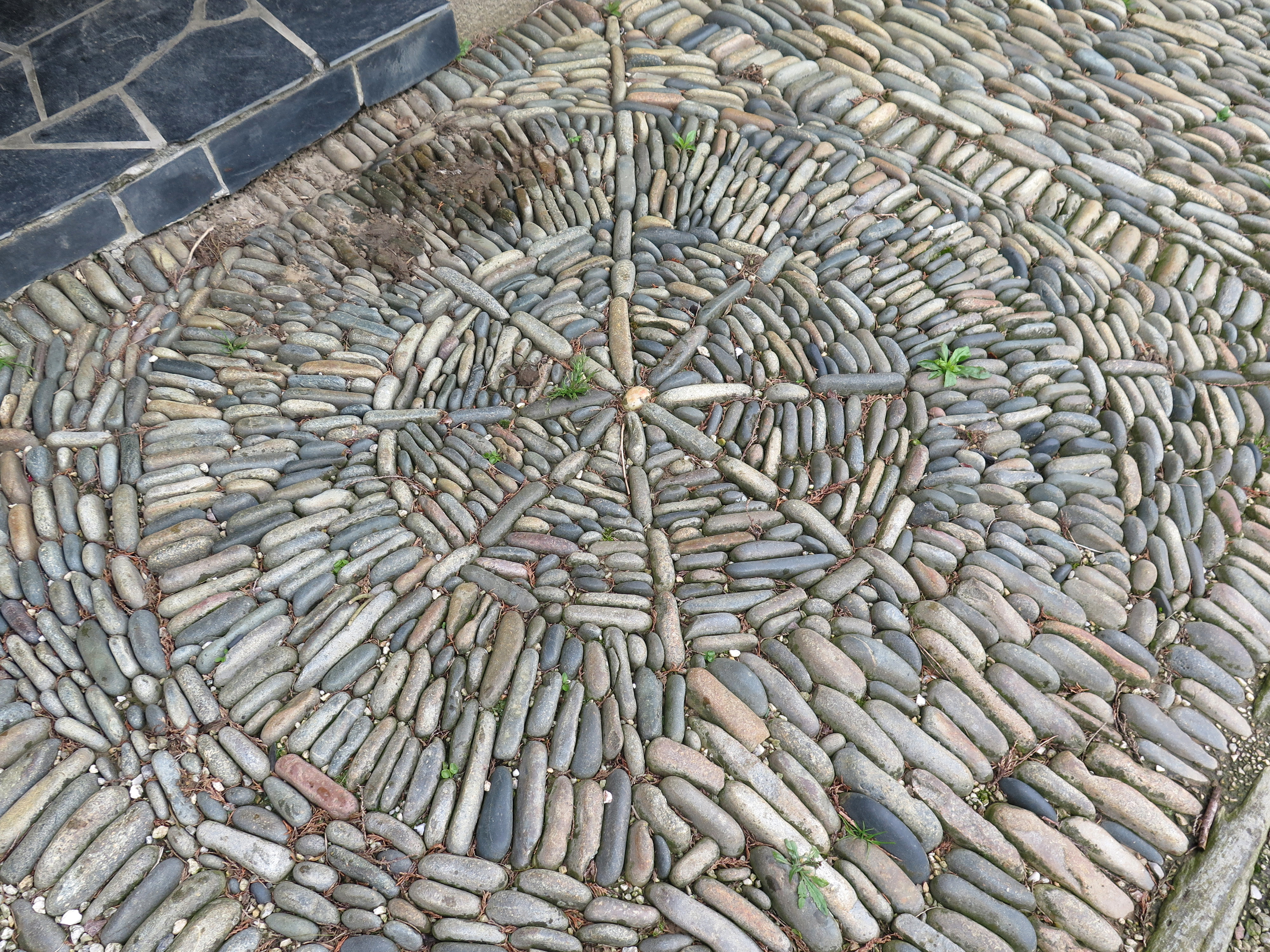 Kermaria-Sulard, Kersamson : passage de communication du logis aux étables réalisé en calade (pavement de galets)Immatriculation