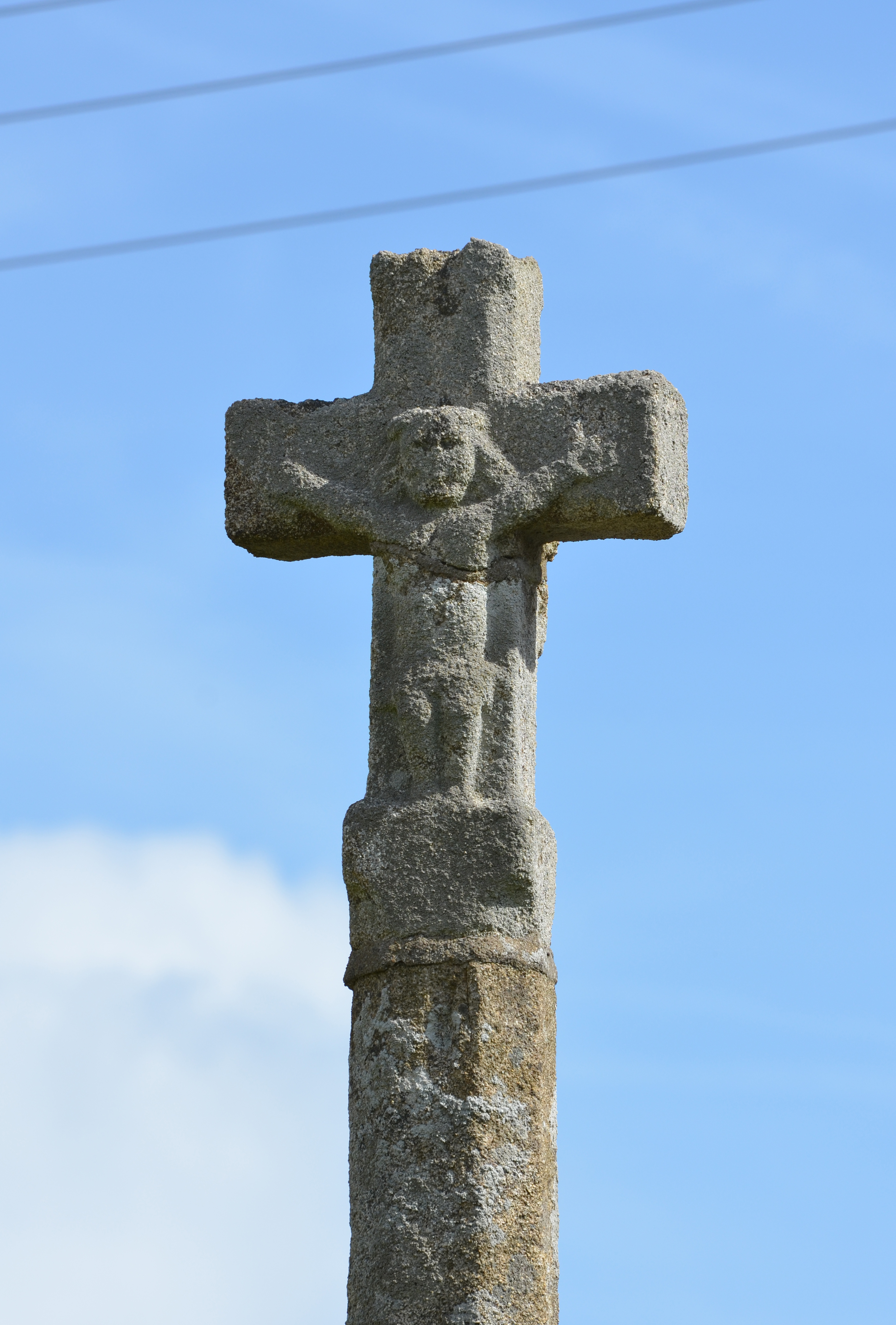 Kermaria-Sulard, Kerhuel : croix de chemin, face sud-sud-ouest, détail du Christ en croixImmatriculation