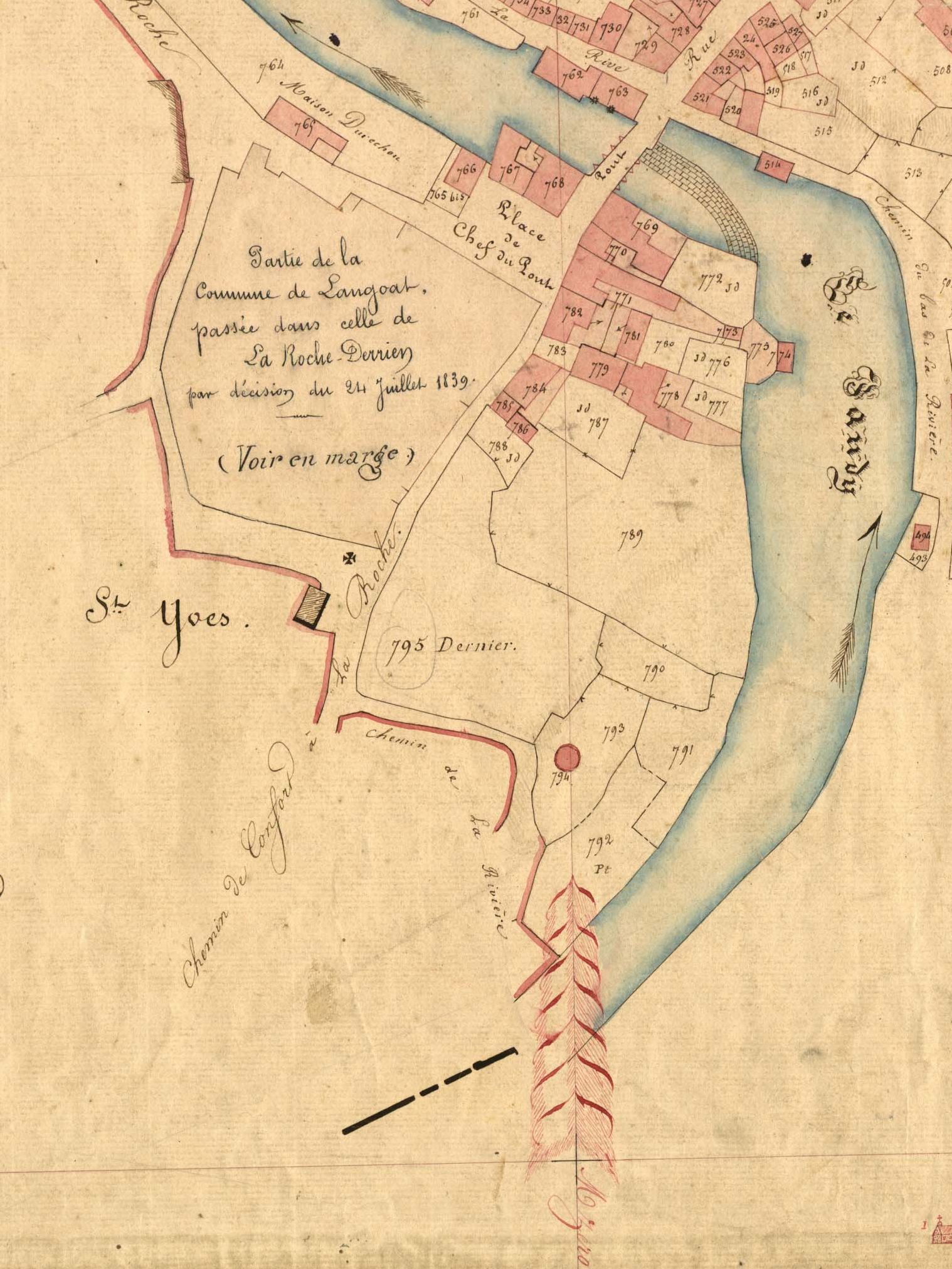 Chef du Pont en 1836. Extrait du cadastre ancien de 1836 corrigé en 1839, section A2 (A.D. 22, série 3P 264)Immatriculation