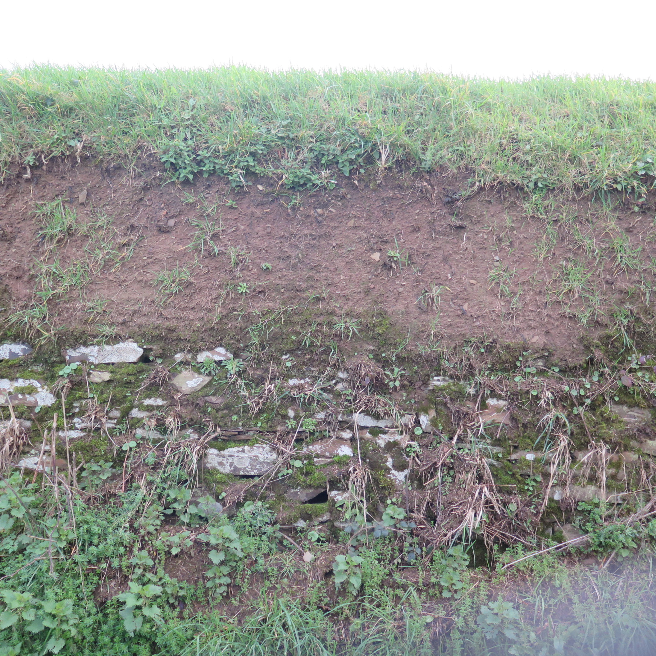Kergoff. Route bordée d'un talus-mur. Détail de la mise en oeuvreImmatriculation