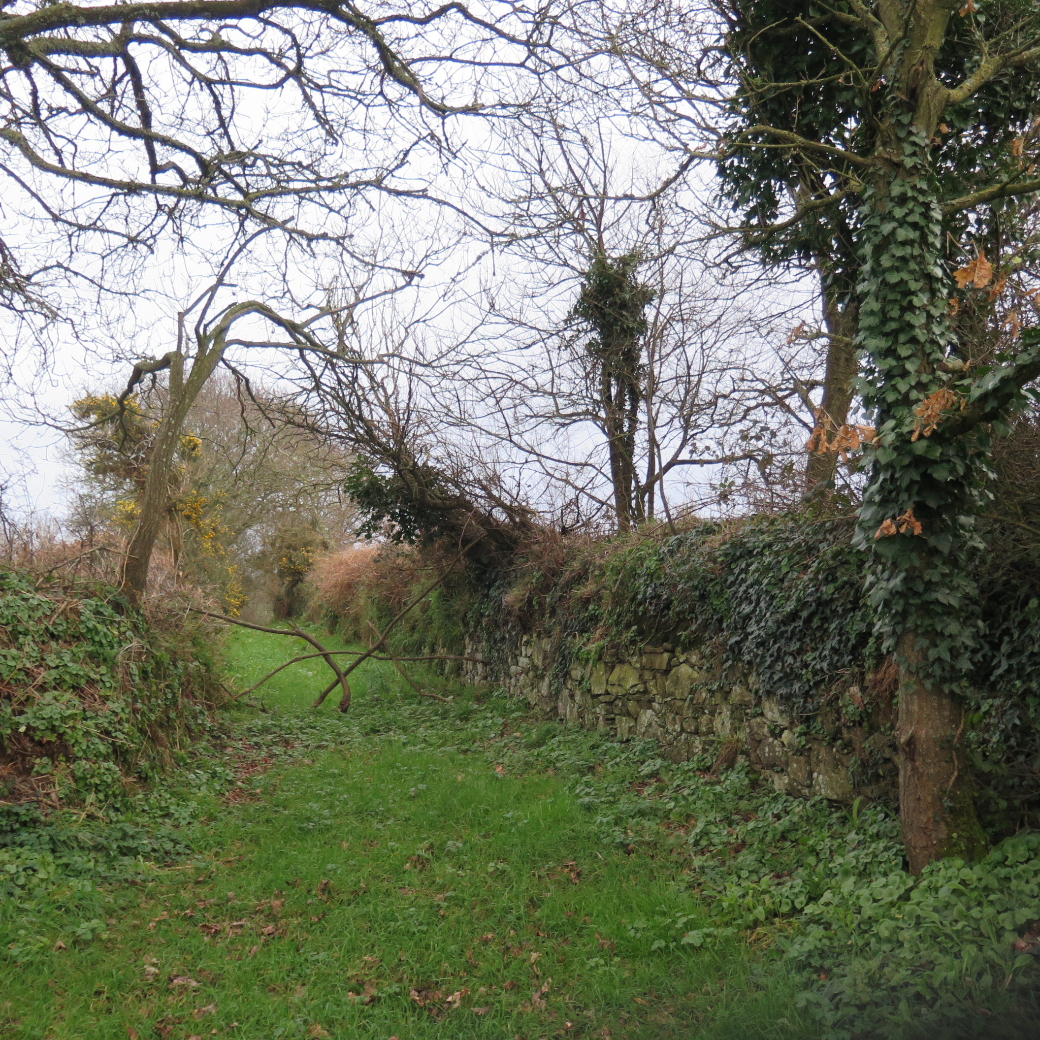 Pen ar Crec'h. Chemin bordé de talus-mur. Vue généraleImmatriculation