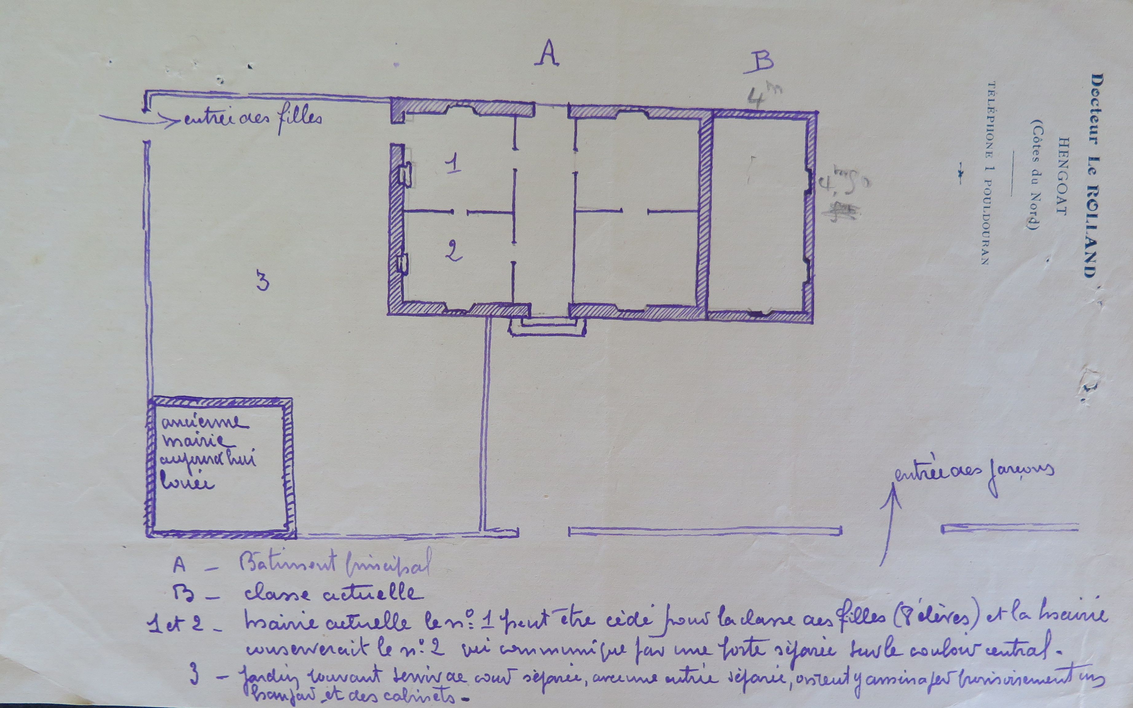 Croquis des bâtiments, 1932. (AD 22, série 2 O 78/1 Biens communaux)Immatriculation