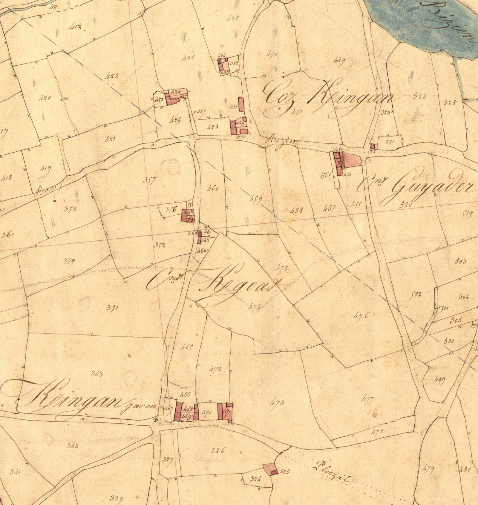 Keringan(t) jaron et Coz Keringan(t) en 1835. Extrait du cadastre ancien, section B1 (A.D. 22, série 3 P 078)Immatriculation