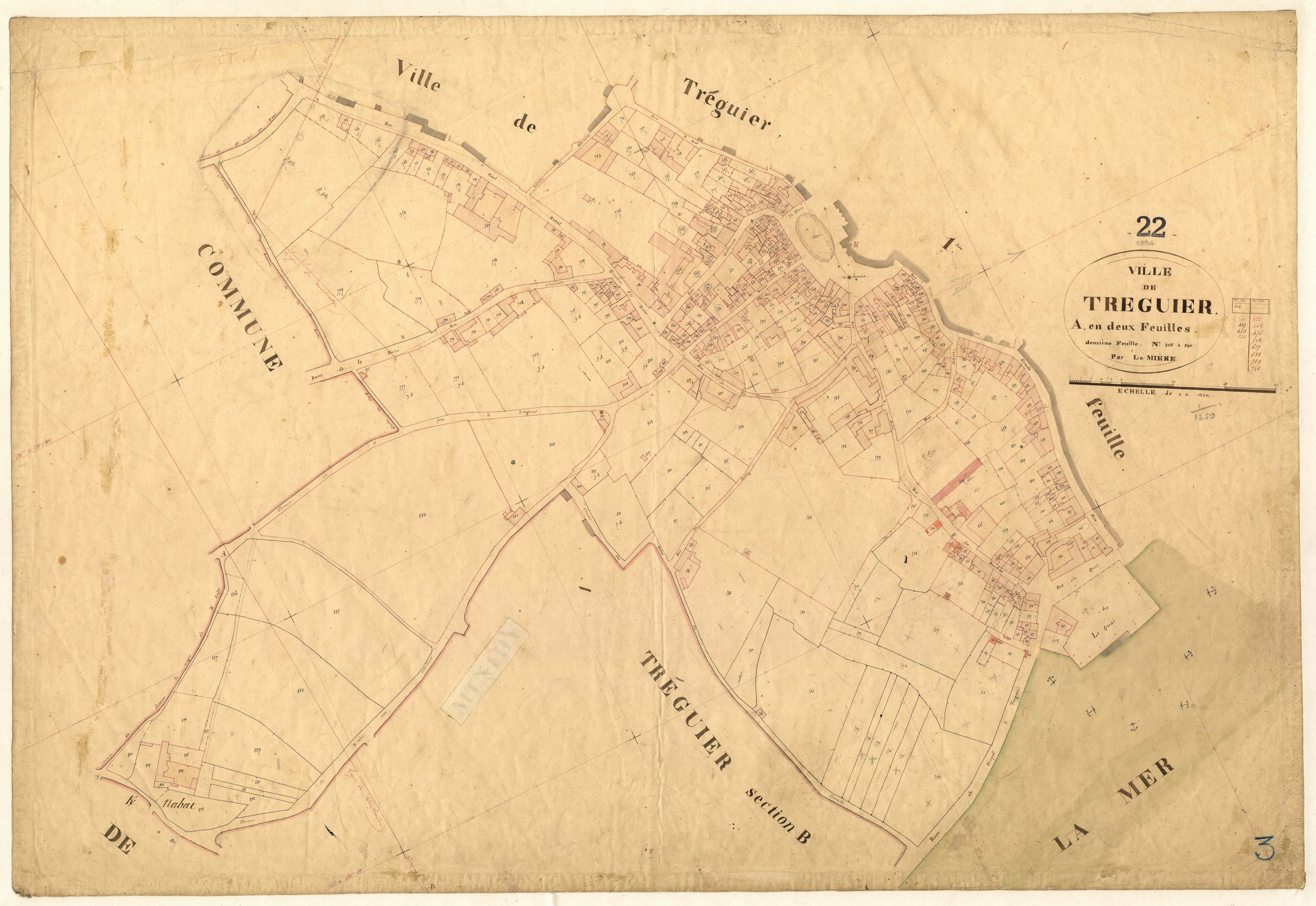 La ville de Tréguier en 1834. Section A2 du cadastre ancien (Archives départementales des Côtes-d'Armor, série 3P 362/3)Immatriculation