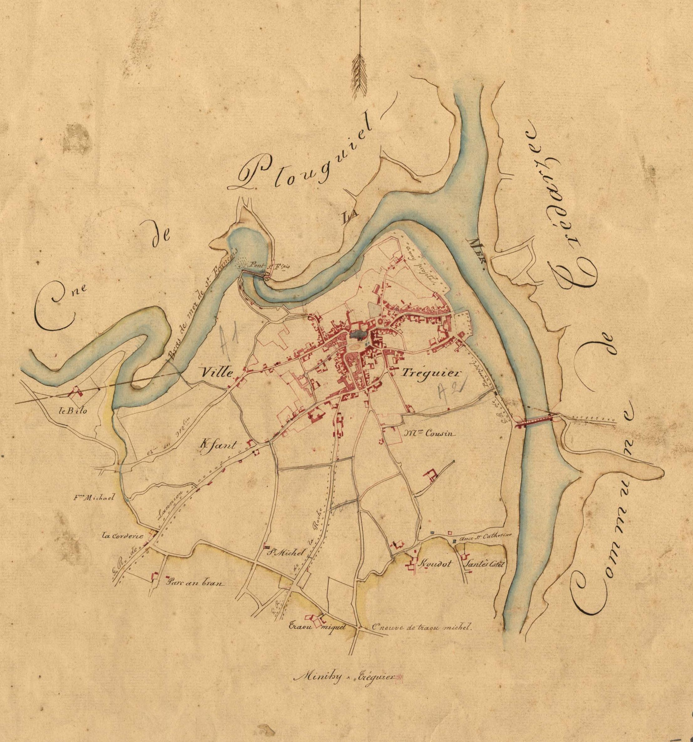 Tableau d'assemblage et plans parcellaires de la commune de Tréguier, 1834.