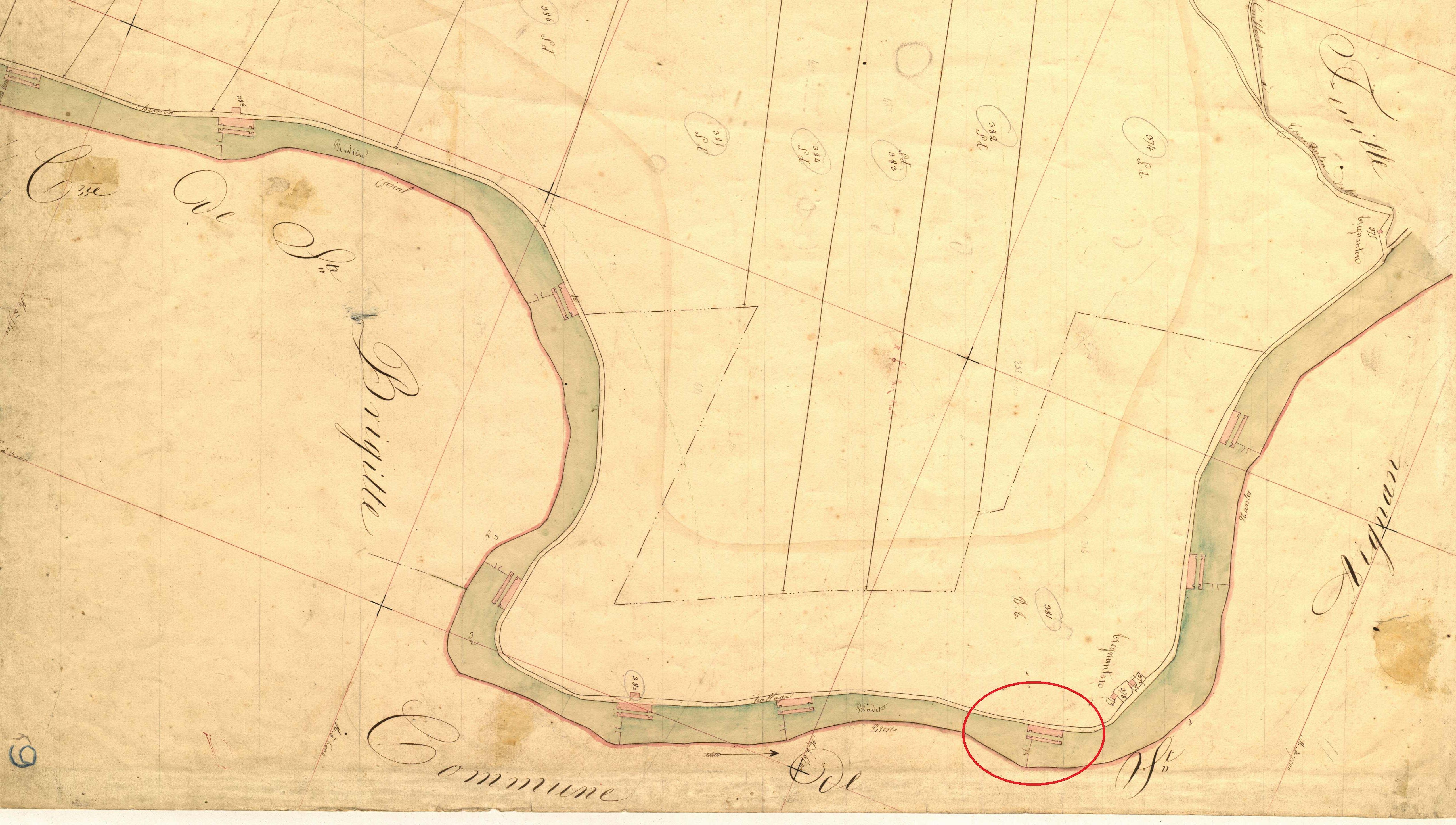 Cadastre de Saint-Gelven (ancienne section Laniscat), 1835, extraitImmatriculation