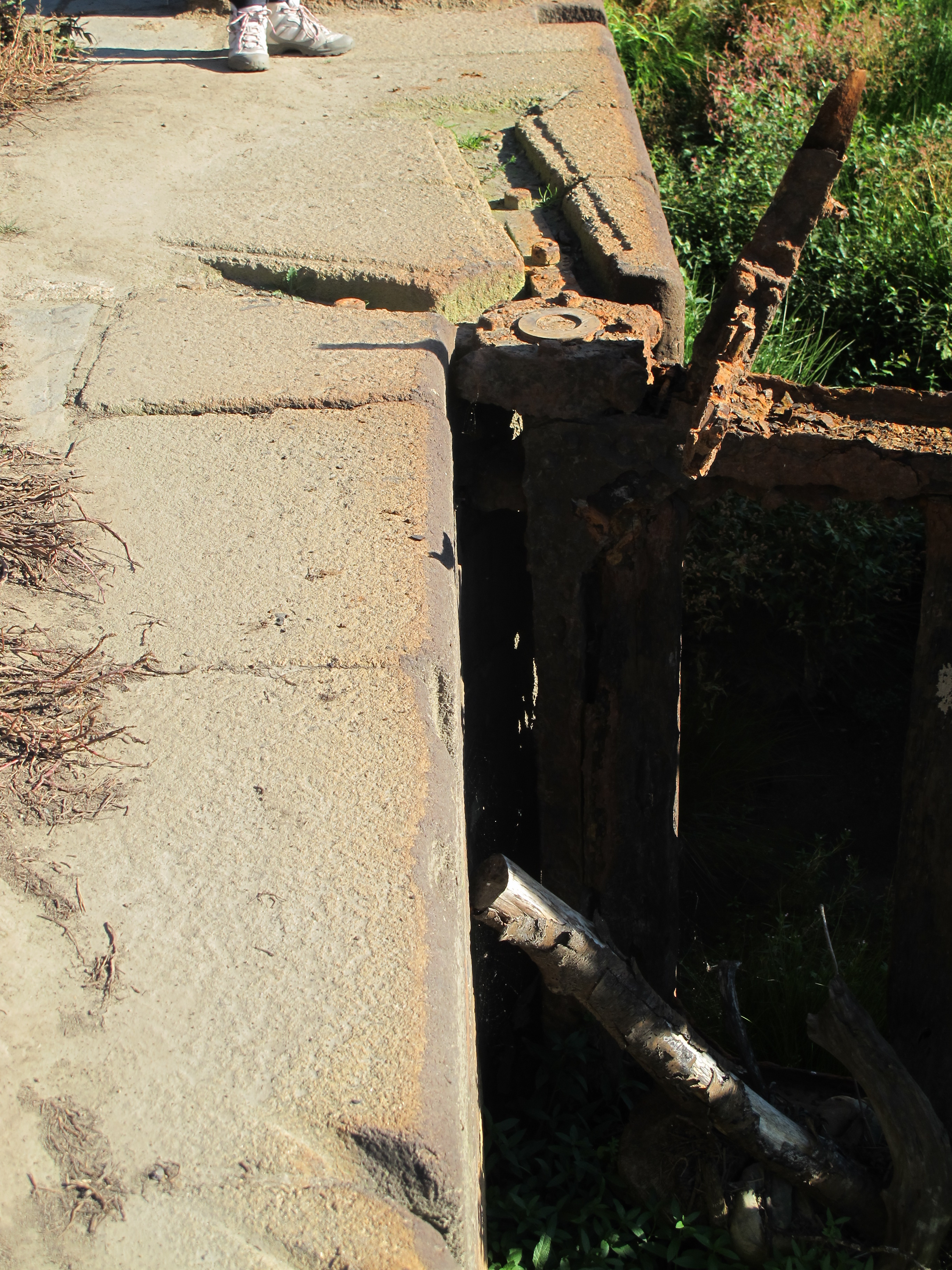 Site d'écluse Toul Houët, collier tourillon (type de fixation différente) et poteau tourillonImmatriculation