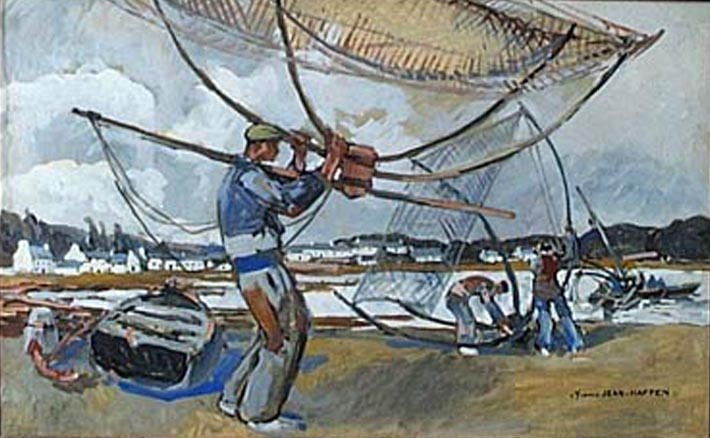 La pêche au carrelet, au-devant du port du Lyvet par Yvonne Jean-Haffen (1895-1993)Immatriculation