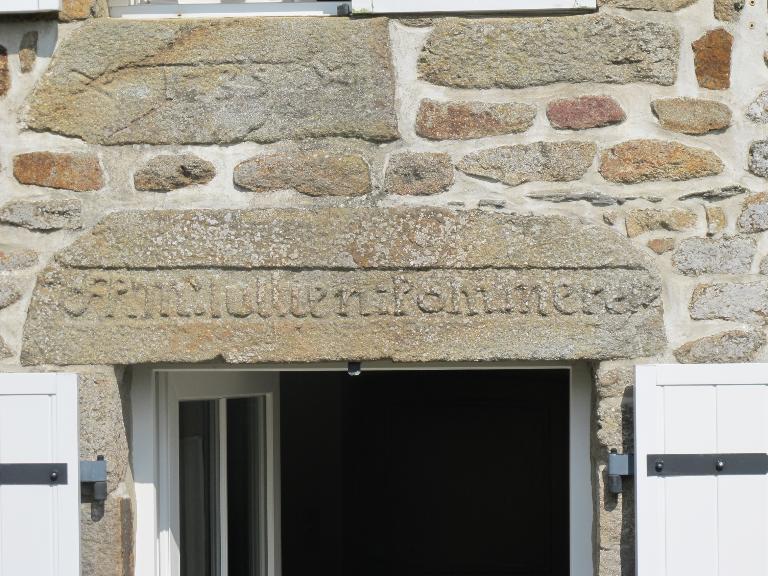 Maison rue des Fresches, façade arrière, détail inscriptionImmatriculation