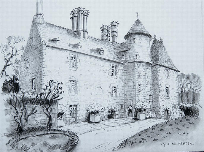 Le château de la Bellière, façade sud, dessin d'yvonne Jean-Haffen entre 1940 et 1950Immatriculation