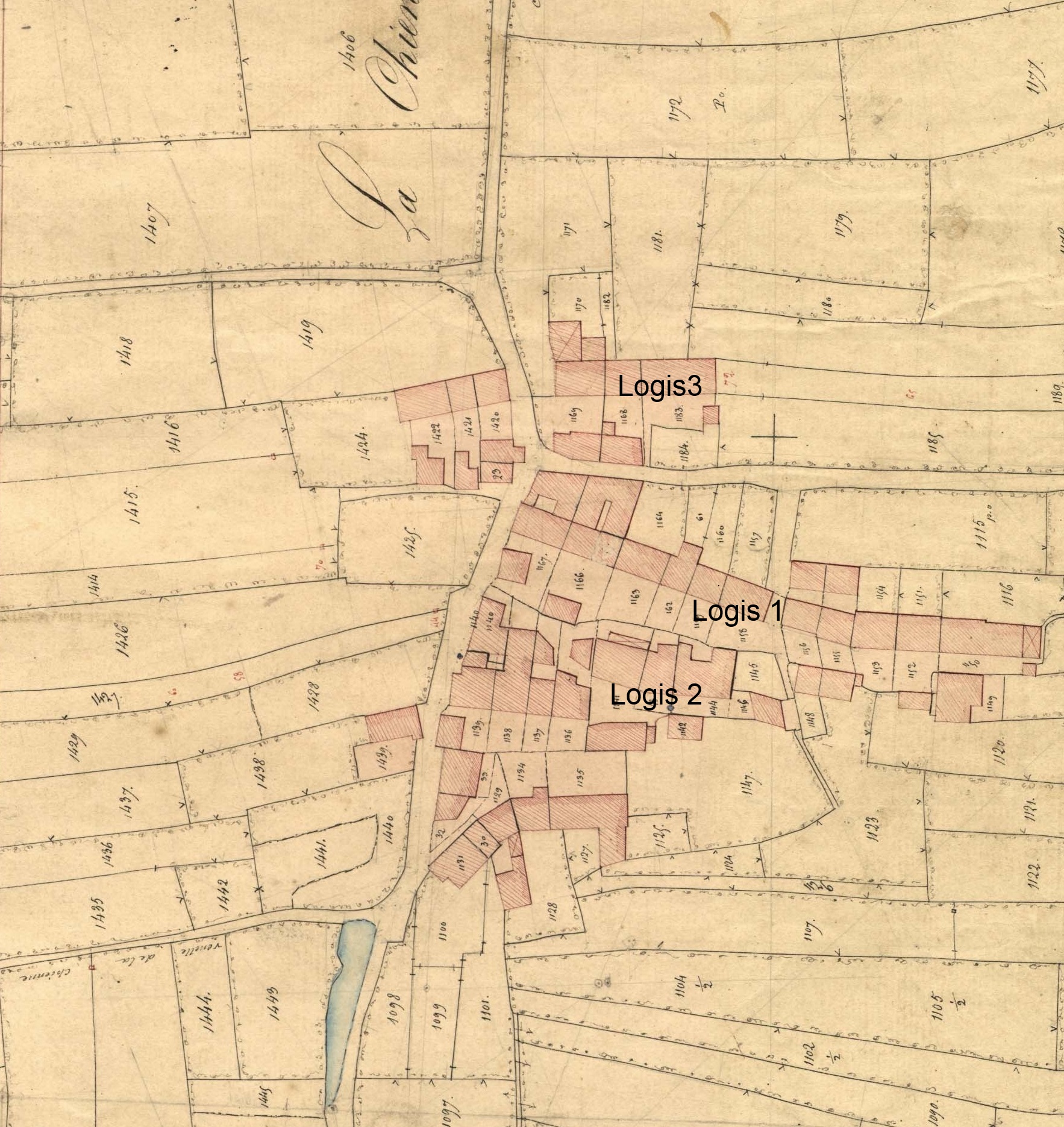 Situation sur le cadastre de 1844 orienté, des logis photographiésImmatriculation