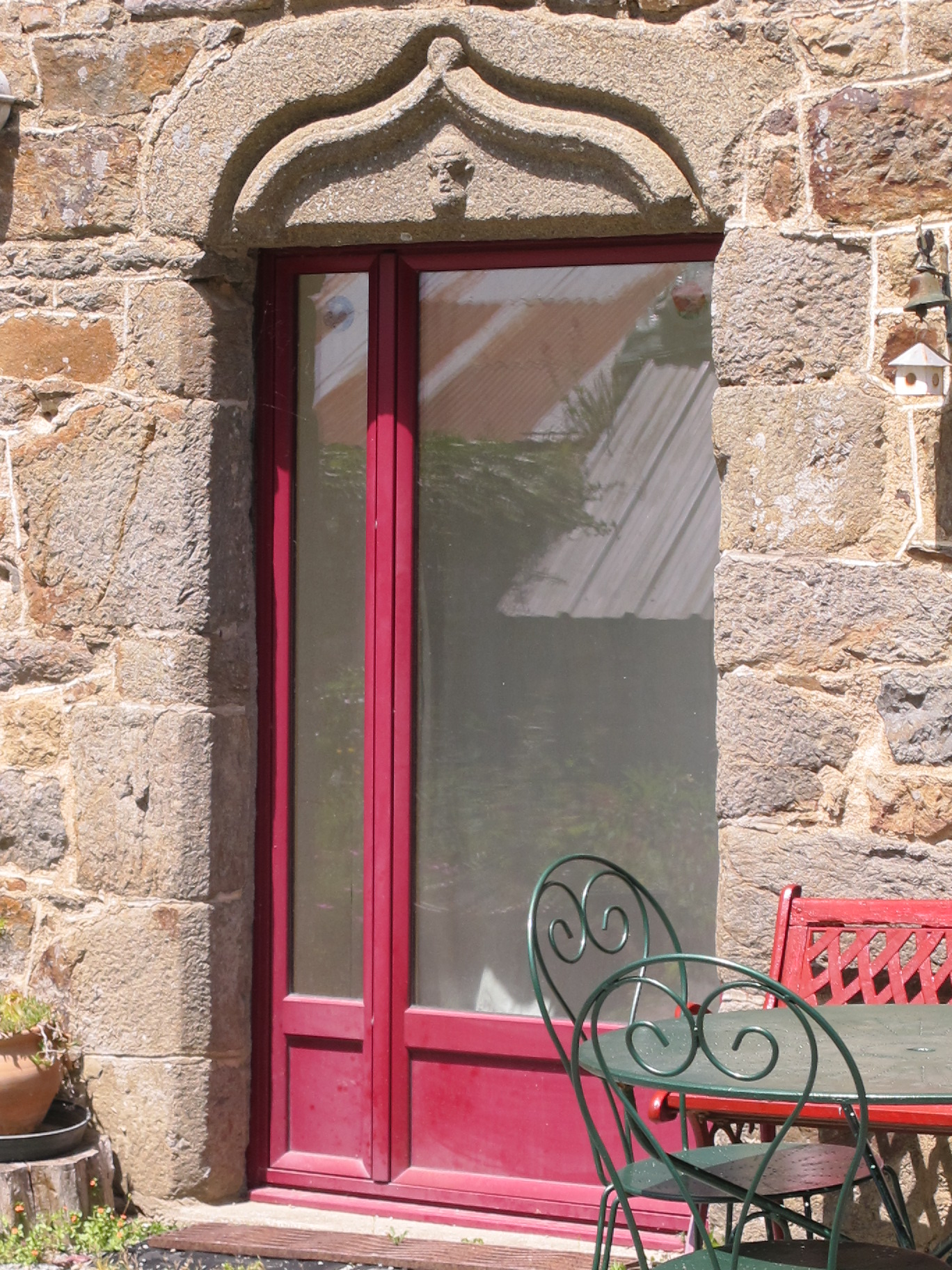 Partie droite, réemploi d'un linteau avec accolade et tête sculptéeImmatriculation