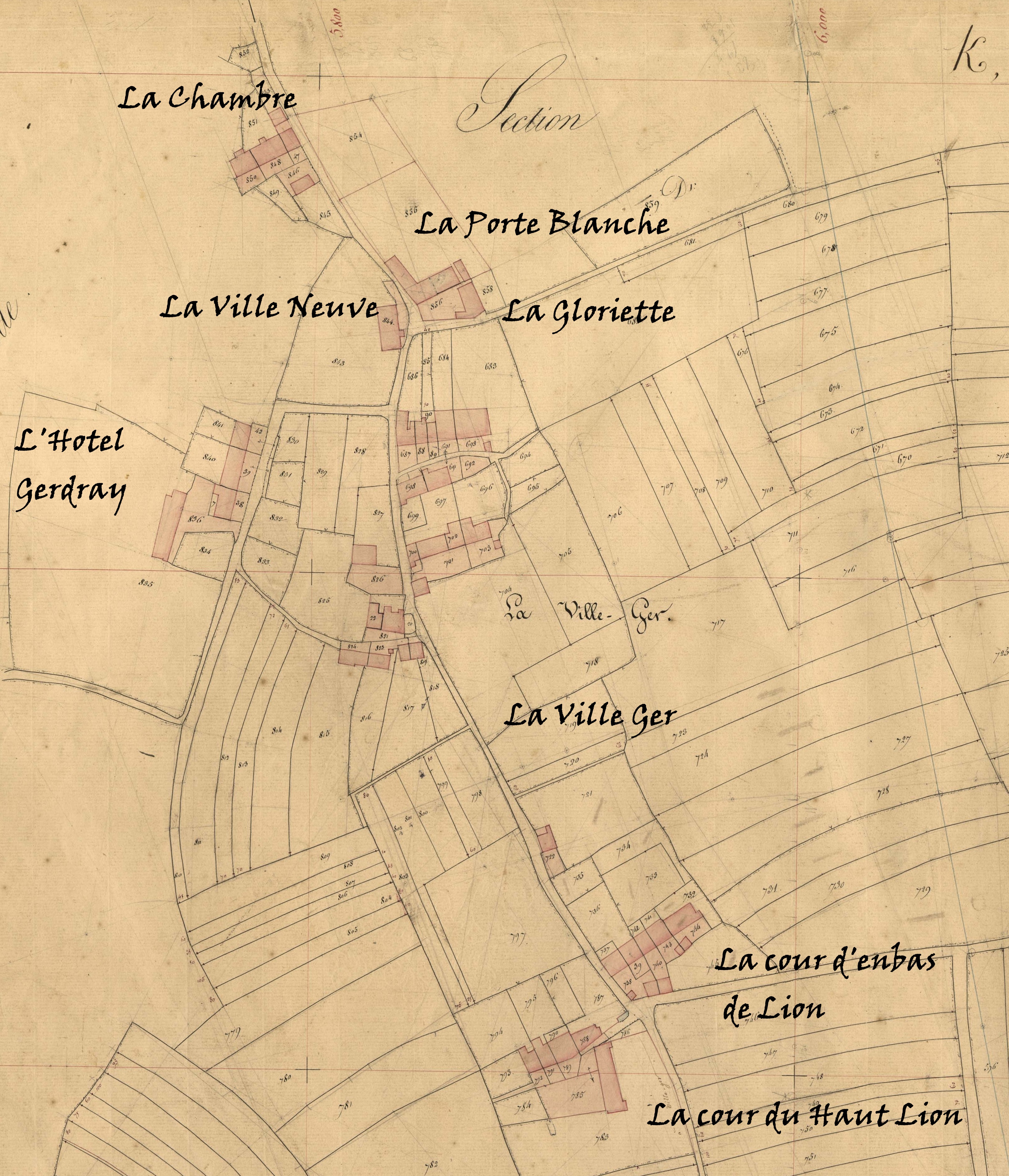 Extrait du cadastre de 1844, avec ajouts des toponymesImmatriculation