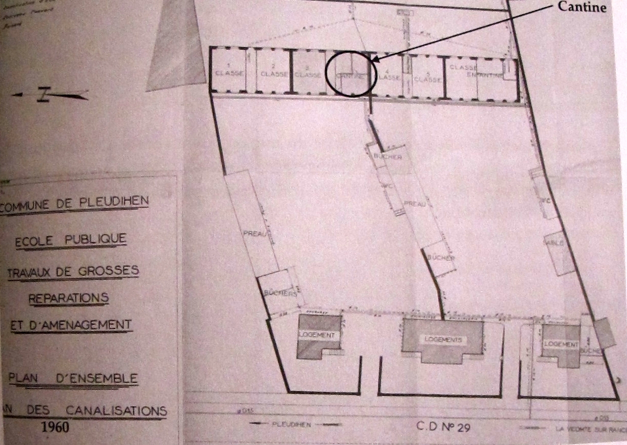 Ecole publique, travaux de grosses réparations et d'aménagement. Plan d'ensemble. Plan des canalisations, 196O.Immatriculation