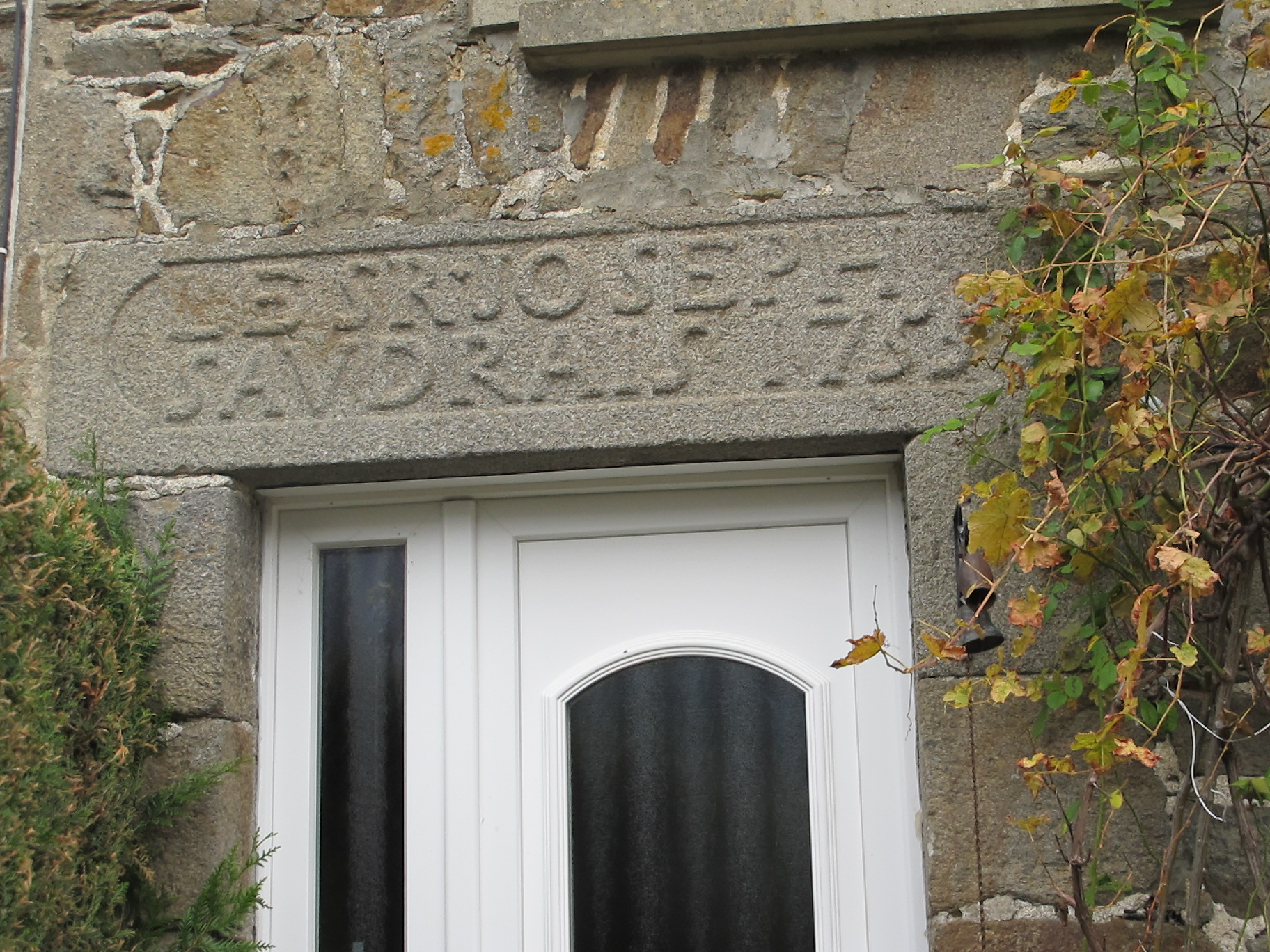 Cains, linteau sculpté : LE S(ieu)R Joseph SAUDRAIS 1755Immatriculation