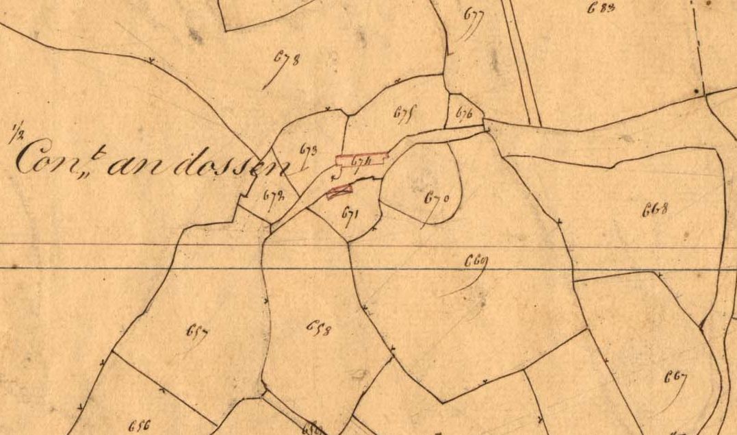 La motte castrale de Croas Husto en 1834. Extrait du cadastre ancien, section c2 (A.D22, série 3P33/1)Immatriculation