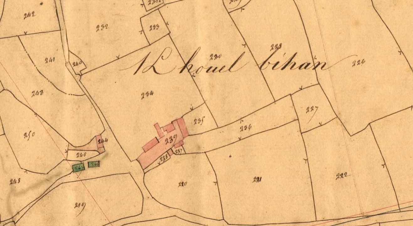 La ferme de Kerhuel Bras en 1834. Extrait du cadastre ancien, section A1 (A.D22, série 3P33/2)Immatriculation