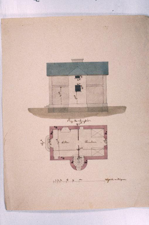 Plan d'élévation et plan au sol du rez-de-chaussé d'un pavillon d'entrée du château de LargentayeImmatriculation